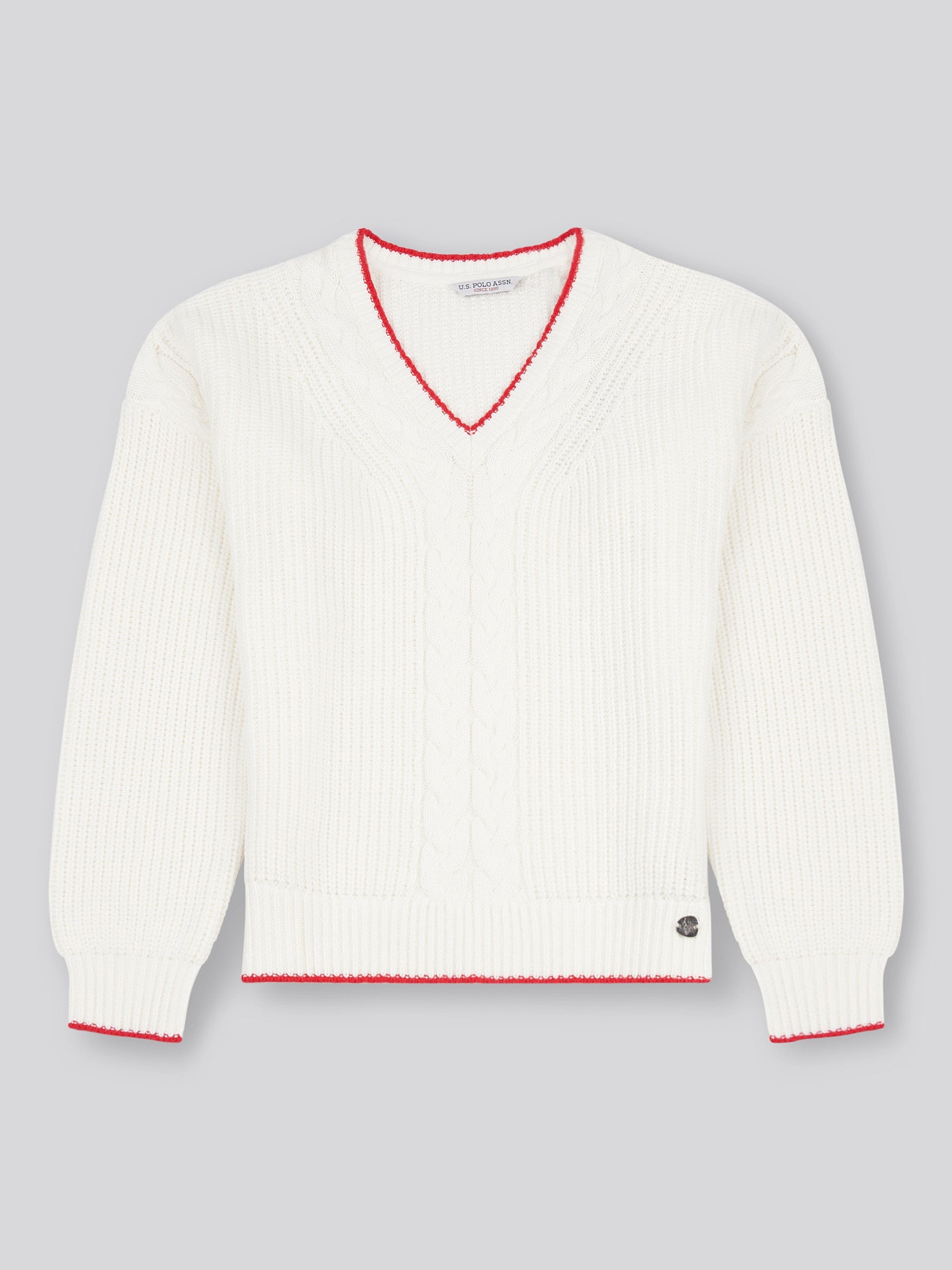 Heritage meets modern styling with the U.S. Polo Assn. Womens Braid Cable Cricket Jumper. Designed with a distinctive cable detail that follows the neckline and armhole, this piece nods to the traditions of polo while offering refined, everyday appeal. Style it with straight-leg jeans and leather loafers for a timeless, off-duty look.