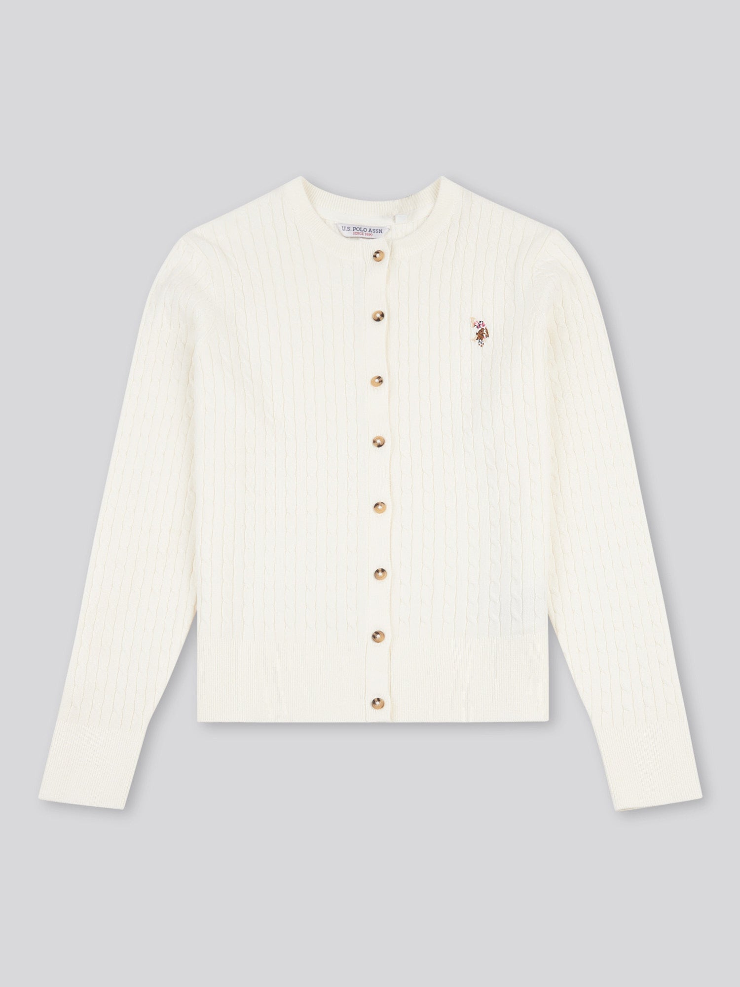 Womens Fine Cable Knit Cardigan in Marshmallow
