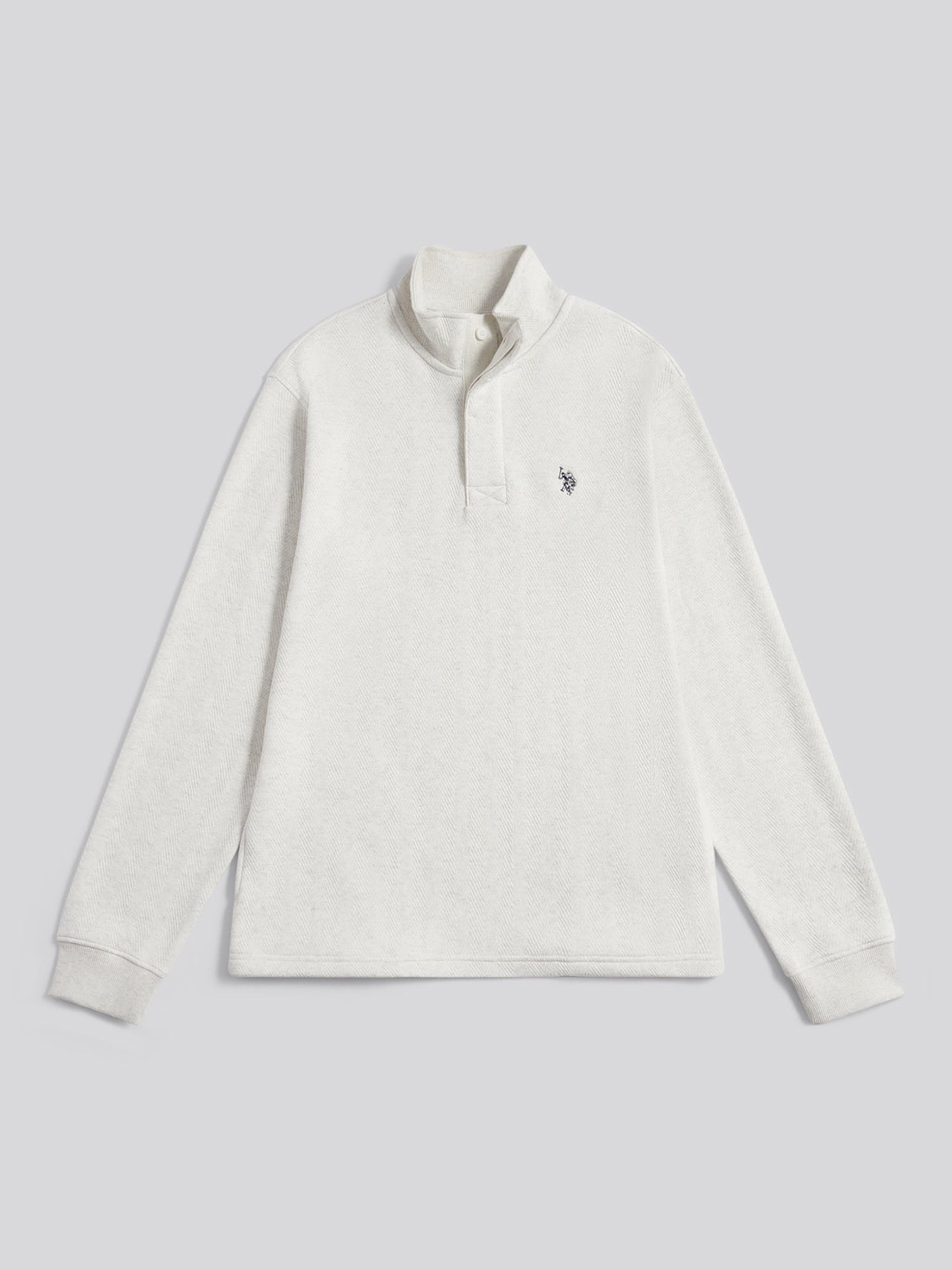 Blending timeless texture with a refined silhouette, the U.S. Polo Assn. Mens Herringbone Open Hem Funnel brings understated polish to relaxed dressing. Elevated with a grown-on placket and concealed branded buttons, this heritage-inspired funnel neck is perfect layered over a T-shirt with jeans or cords for an effortlessly smart finish.