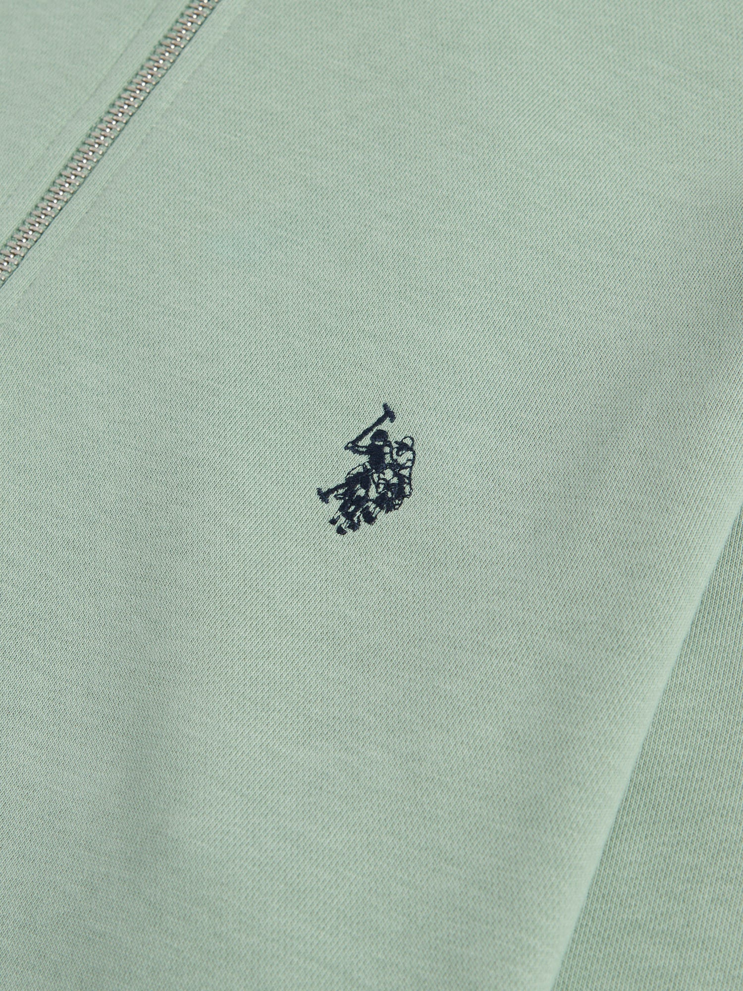 A comfortable top layer, this U.S. Polo Assn. Mens 1/4 Zip Sweatshirt offers a smart aesthetic with relaxed fabrics. Crafted from a soft, smooth loopback cotton, the clean design features the signature double Horsemen motif embroidered on the chest in a contrast finish. Perfect for pairing with denim, chinos, or sweats.