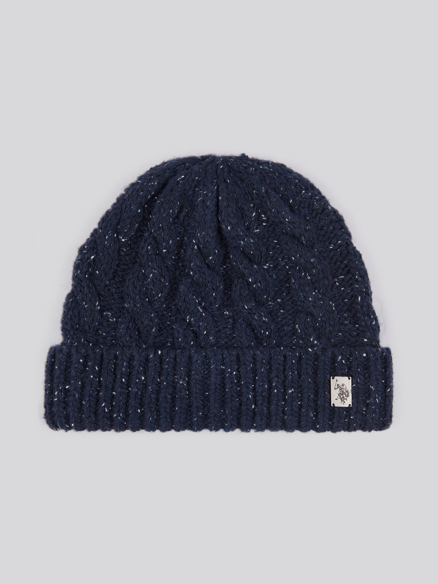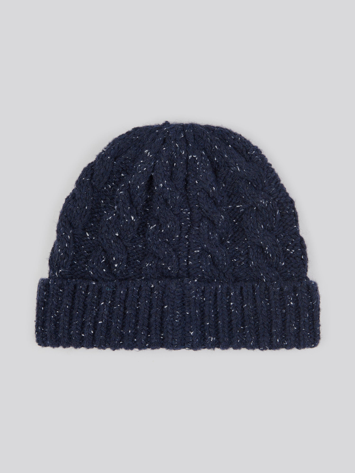 Mens Cable Knit Beanie in Dark Sapphire Navy