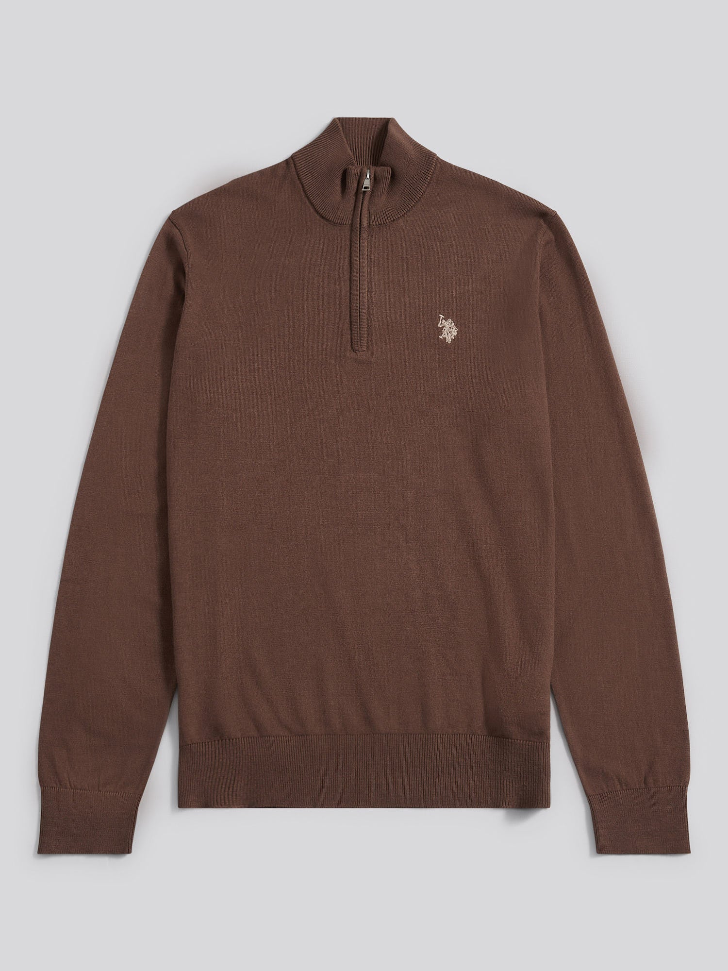 Mens Cotton Funnel Neck 1/4 Zip Knit in Chocolate Martini