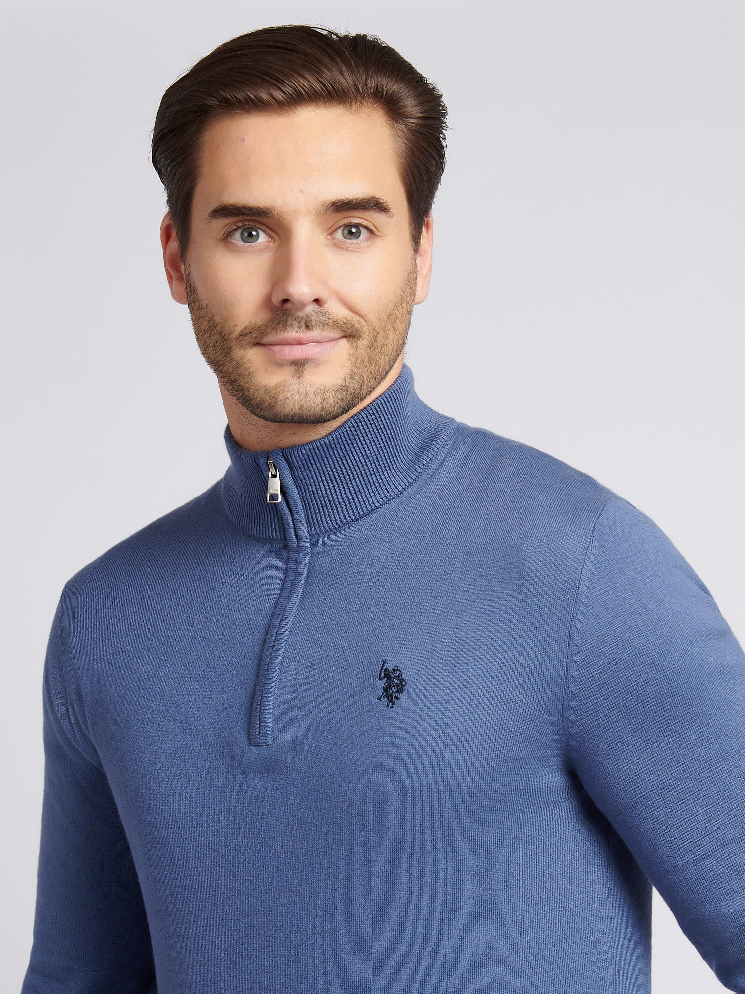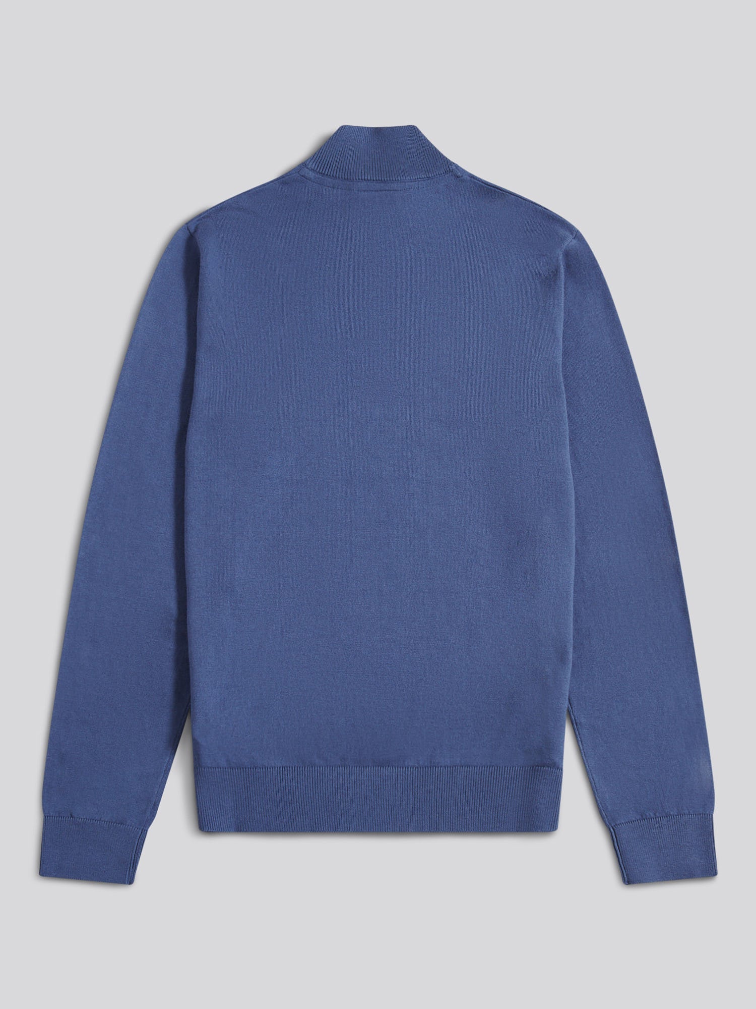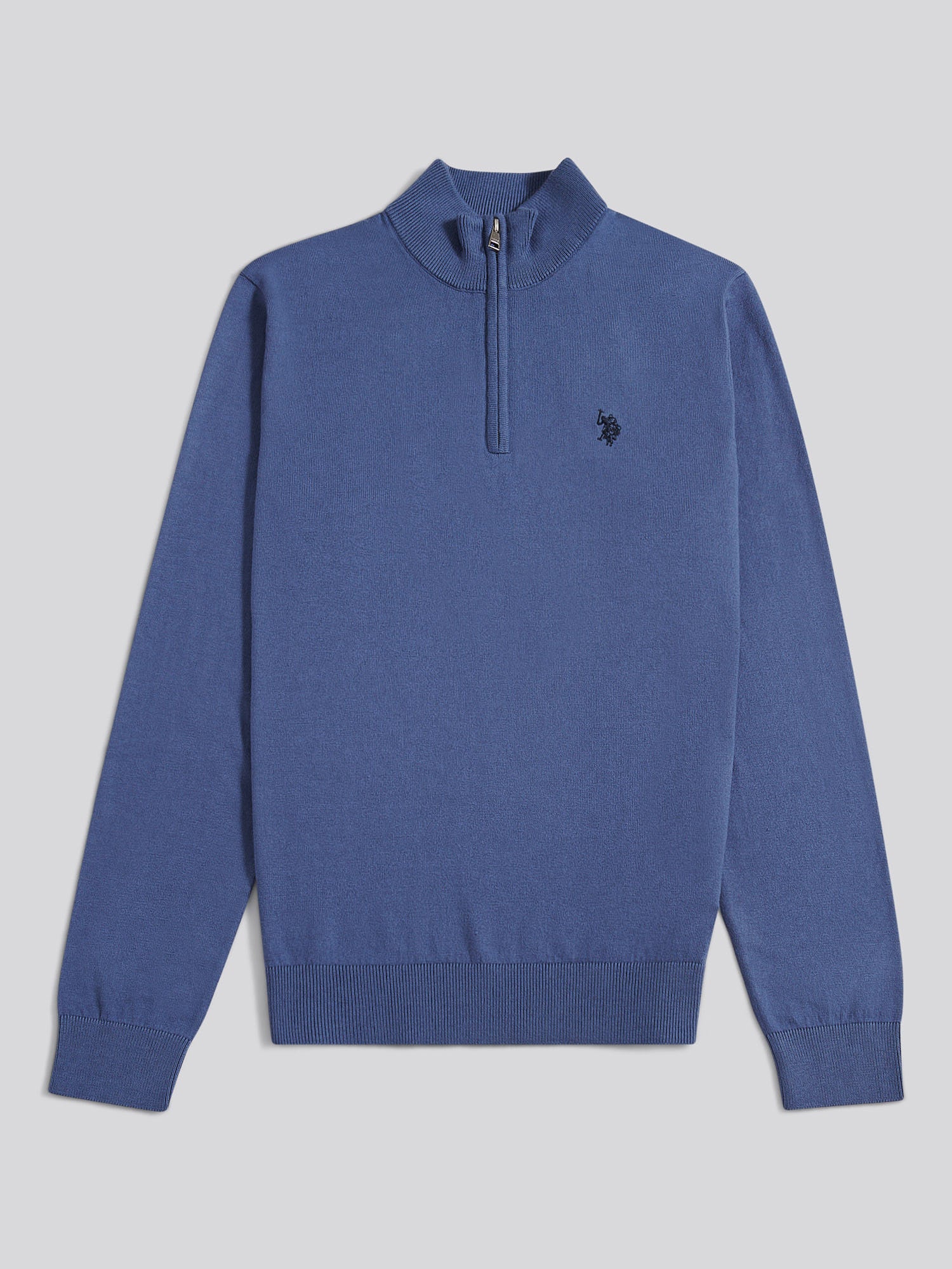 Mens Cotton Funnel Neck 1/4 Zip Knit in Vintage Indigo