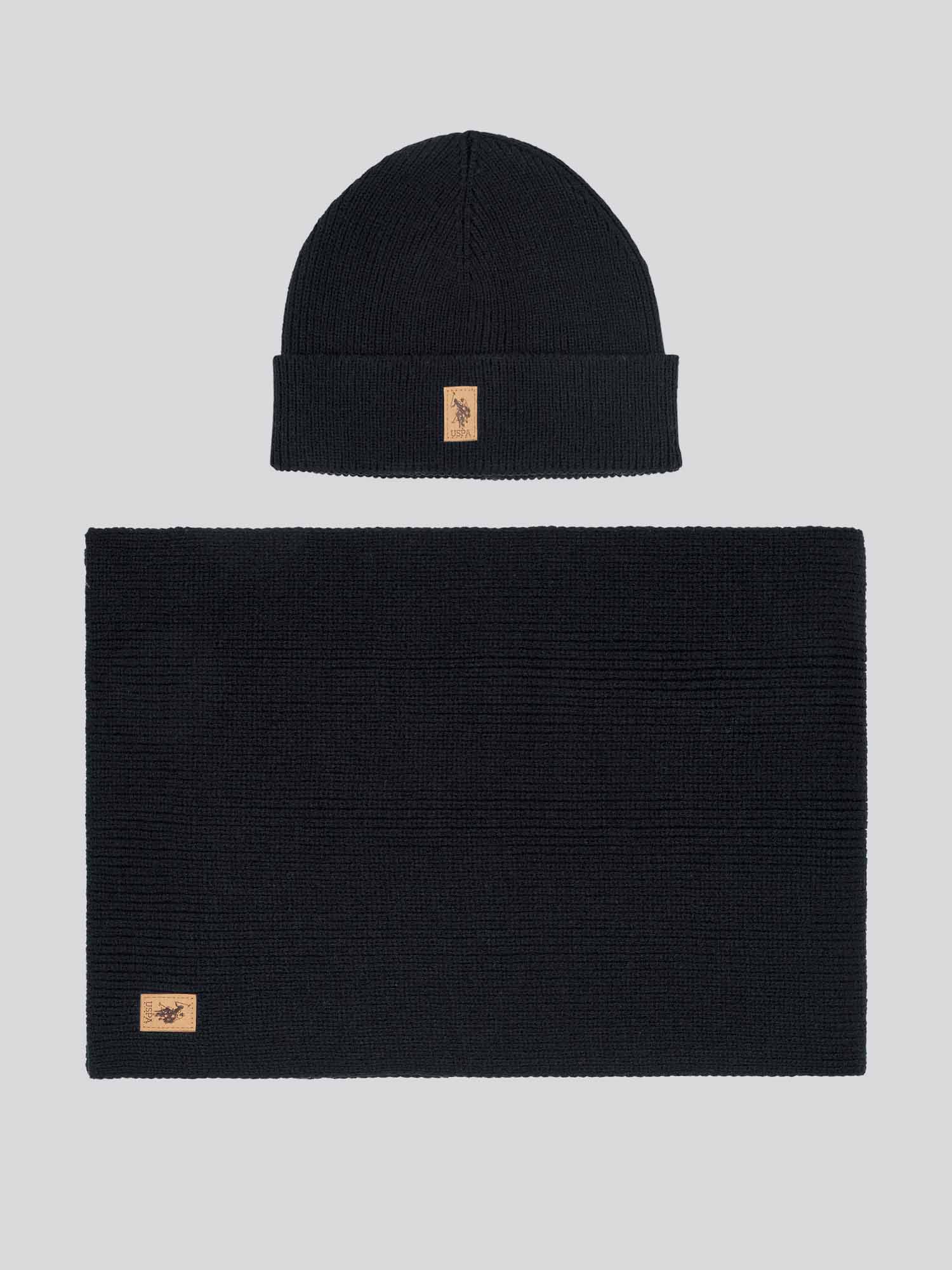 Mens Luxury Rib Knit Beanie & Scarf Set in Black