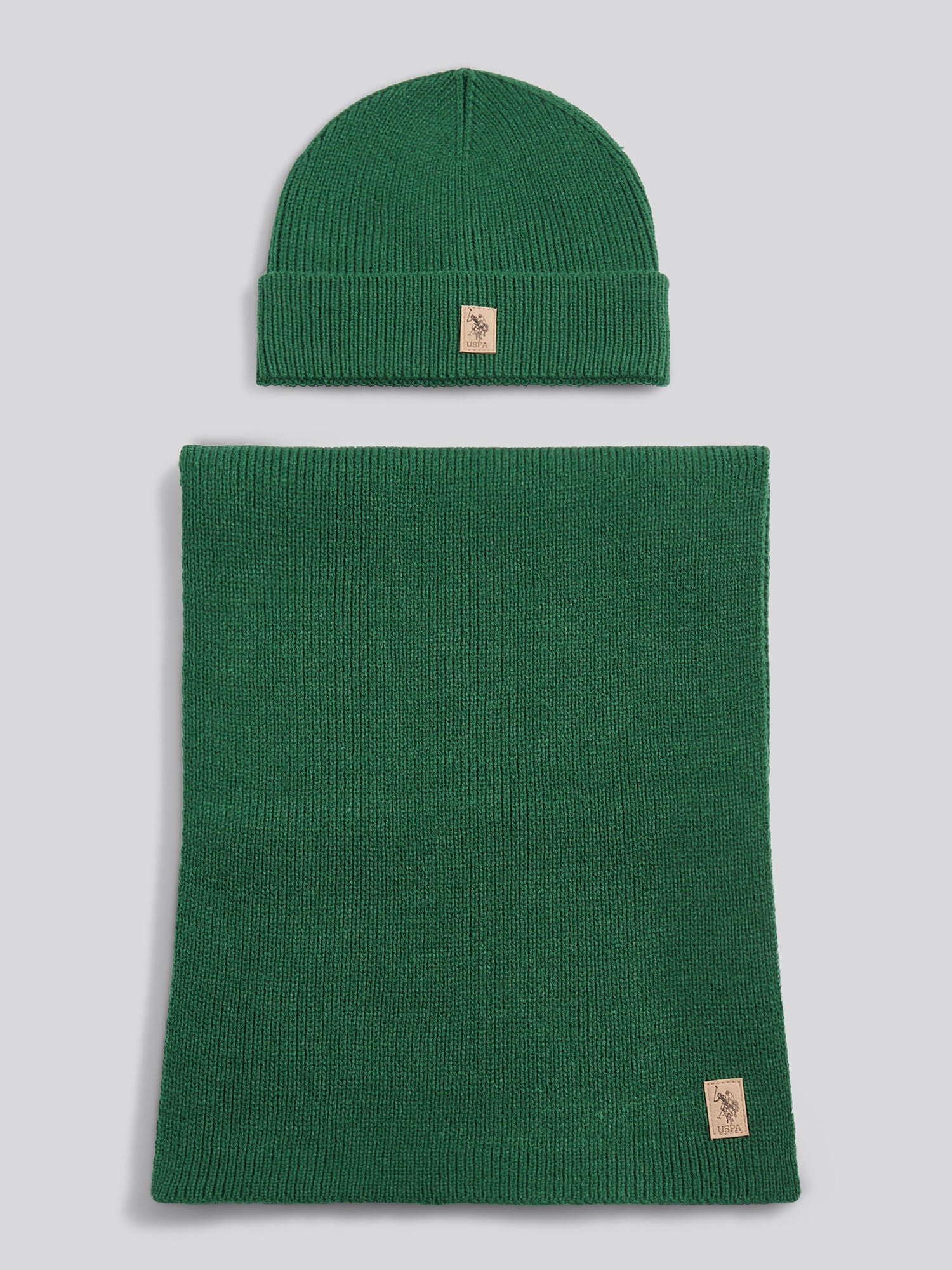 Mens Luxury Rib Knit Beanie & Scarf Set in Pineneedle