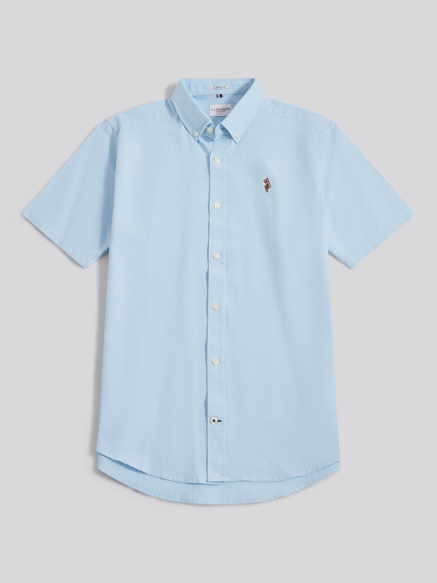 The essence of smart-casual dressing, this U.S. Polo Assn. mens Short Sleeve Oxford Shirt offers a versatile look with refined style. Crafted from luxurious oxford cotton with a soft peached finish, it features the iconic double Horsemen motif for an authentic touch. Pair with chinos or fitted denim for a polished look that effortlessly transitions from day to evening.