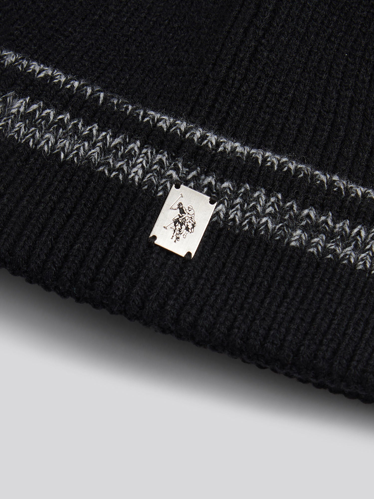 Mens Stripe Tipping Rib Knit Beanie in Black