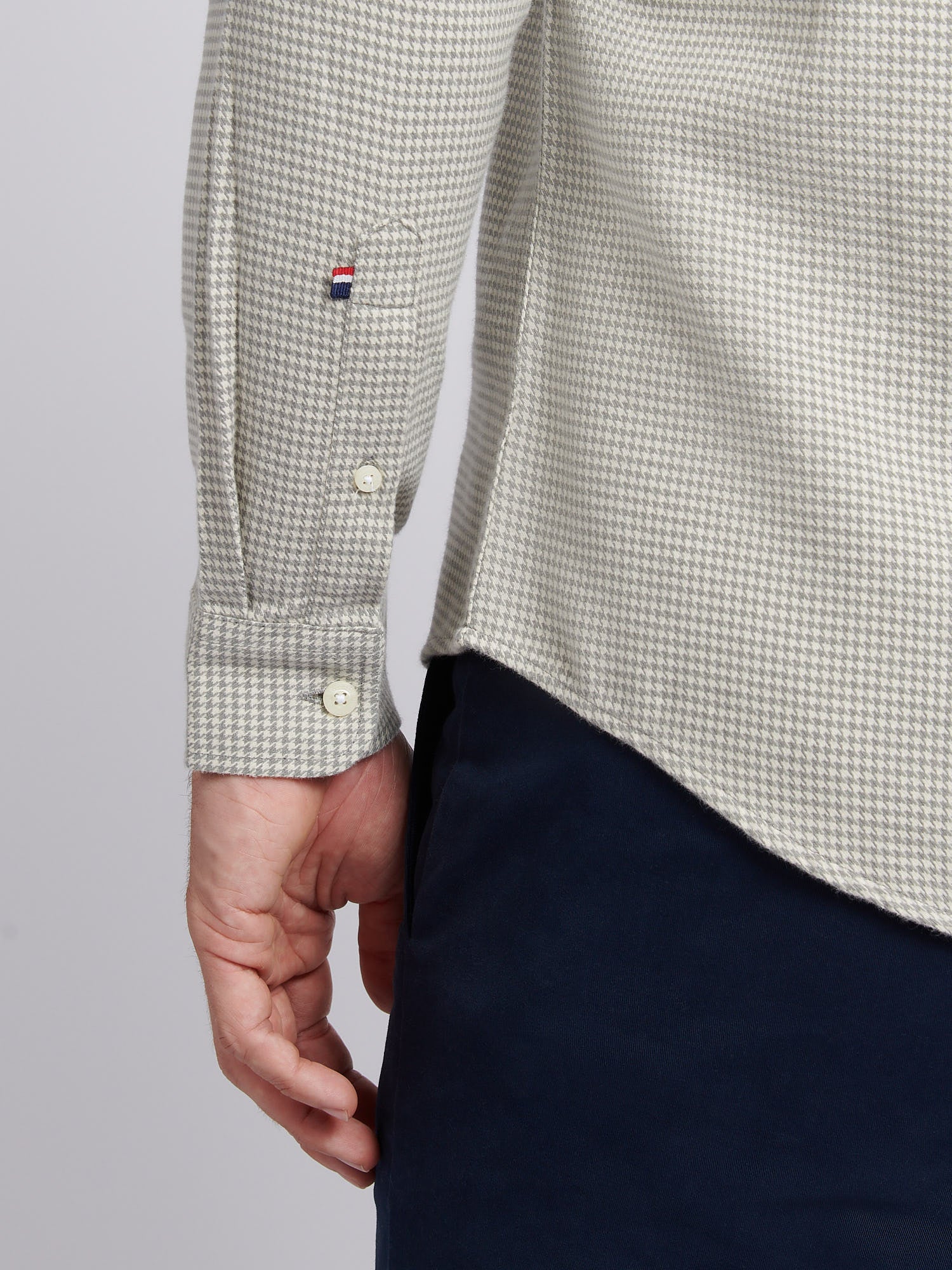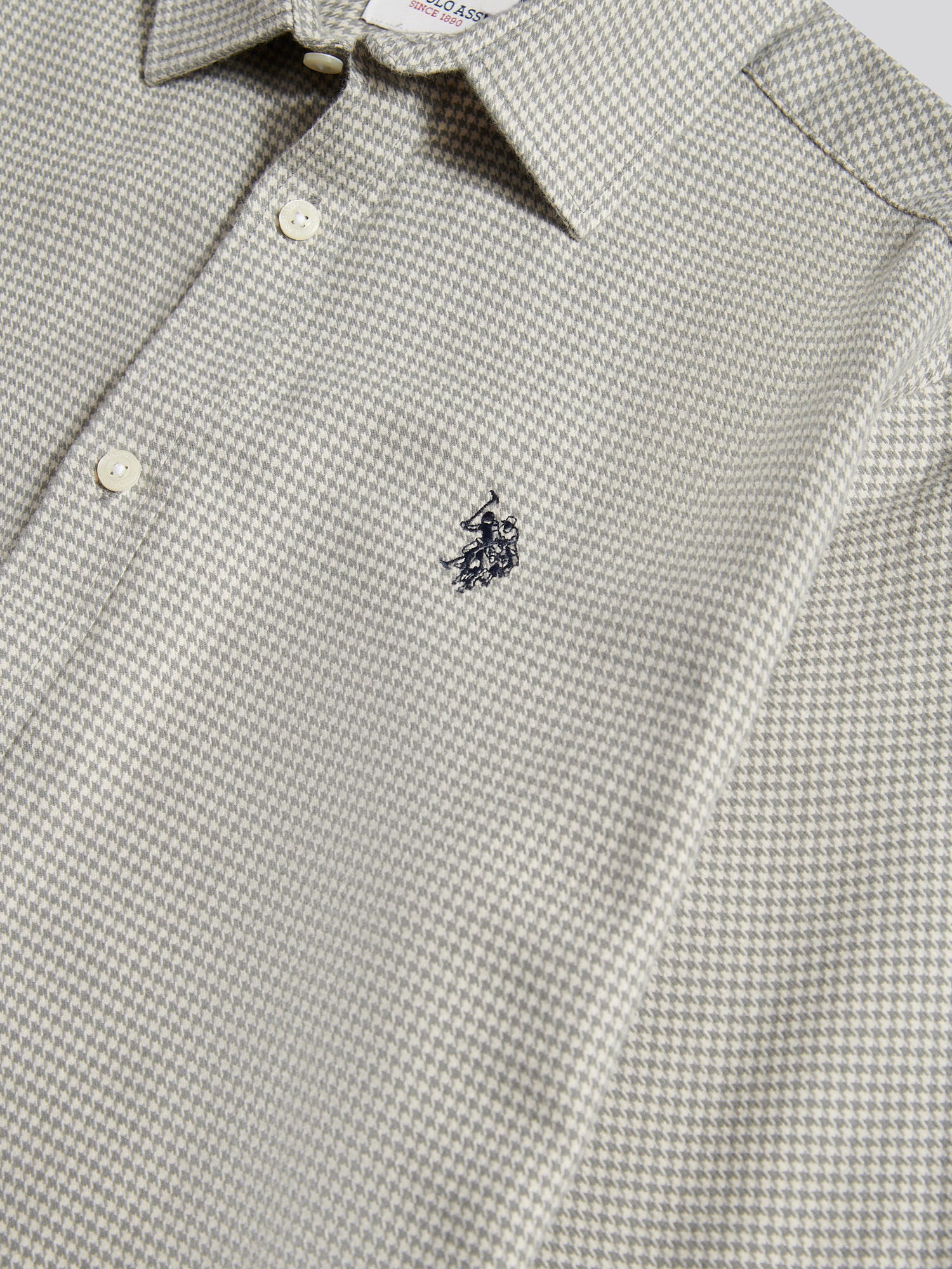 Mens Mini Houndstooth Shirt in Mid Grey Marl