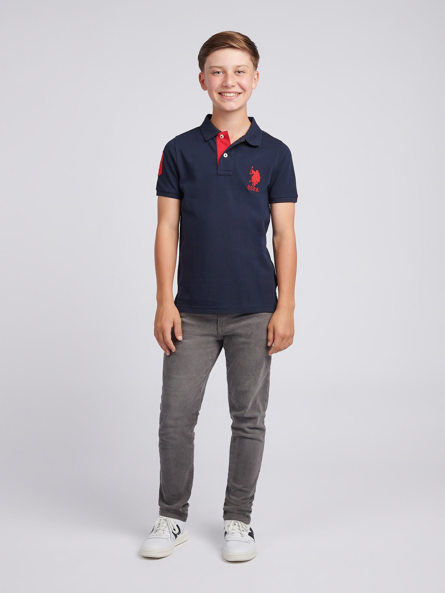 The U.S. Polo Assn. Boys Player 3 Polo Shirt embodies the strength and elegance of polo, with bold design elements fit for the strongest player on the team. Pair with jeans or shorts for a confident, sporty look.