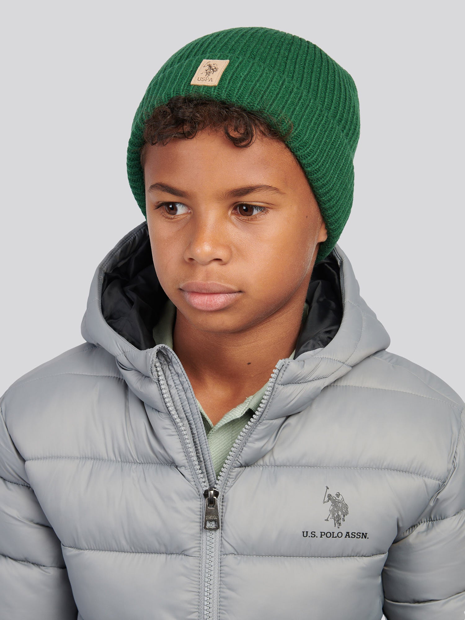 Complete any cold-weather outfit with the U.S. Polo Assn. Boys Signature Double Horsemen Knit Beanie. Designed with a classic fold-over cuff and finished with the iconic Double Horsemen jacron patch, it’s a staple for seasonal layering. Pair with a puffer jacket and scarf for effortless winter style.
