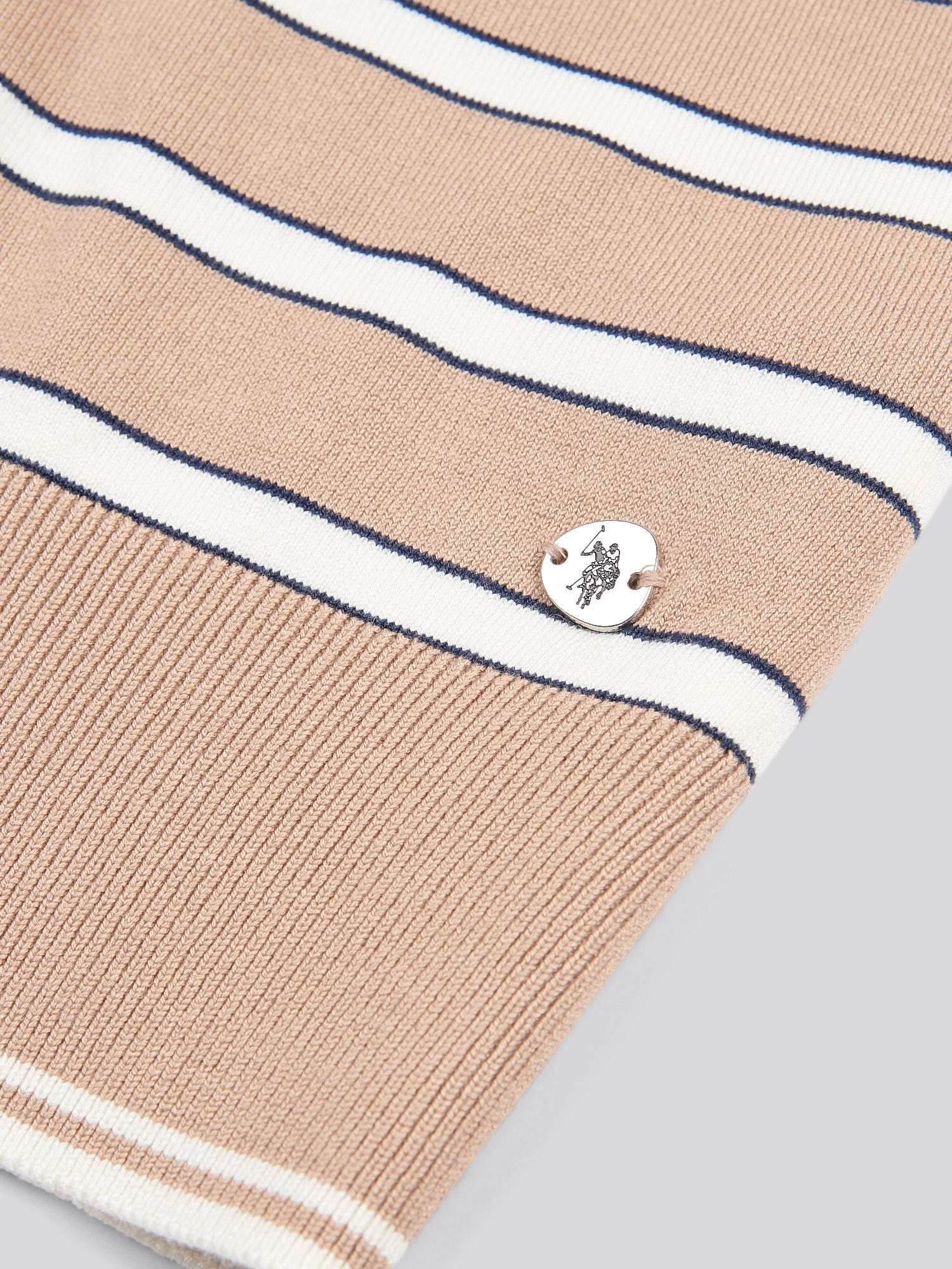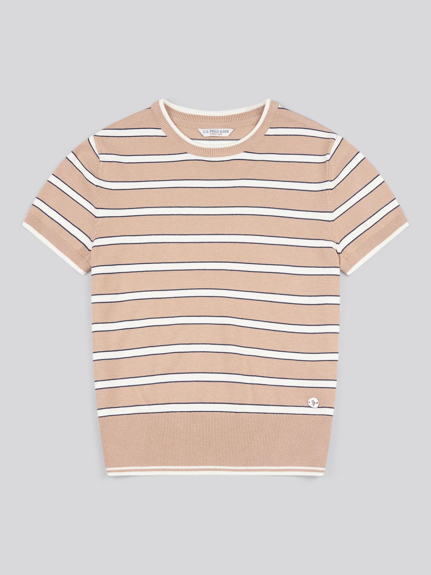 Effortlessly refined, the U.S. Polo Assn. Stripe Short Sleeve Jumper brings modern polish to a timeless silhouette. With dropped shoulders and carefully placed stripe detailing, it’s the perfect balance of comfort and elevated style. Pair with tailored trousers or a pleated midi skirt for a look that feels laid-back but well considered.