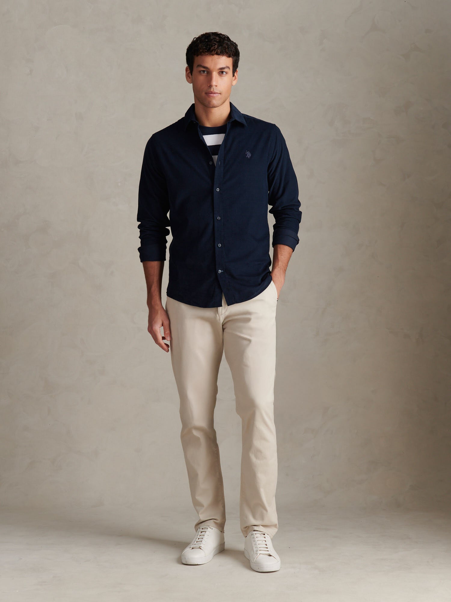 Channelling heritage charm with modern character, the U.S. Polo Assn. Mens Textured Corduroy Shirt reimagines a classic with refined detailing and a soft finish. The dobby cord construction offers rich texture and depth, while the Double Horsemen chest embroidery and grosgrain taping honour the brand’s authentic roots. Pair it with denim and boots for an effortless countryside-inspired look or wear open over a T-shirt for relaxed weekend style.