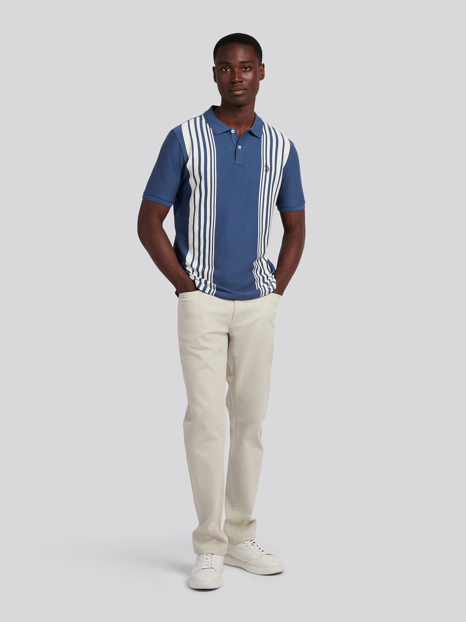 Mens Vertical Stripe Polo Shirt in Vintage Indigo