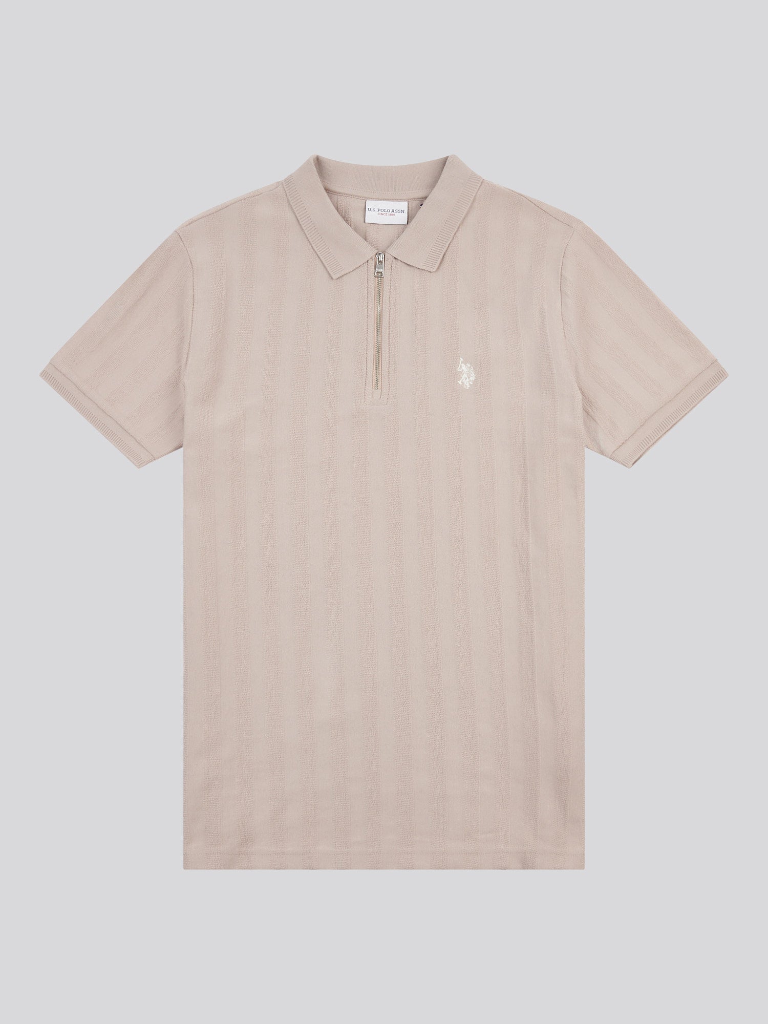 Mens Vertical Stripe Texture Polo Shirt in Atmosphere
