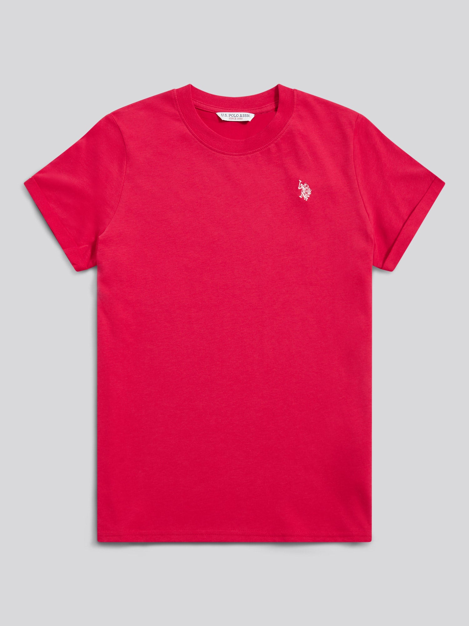 Embrace effortless style with this U.S. Polo Assn. Womens Crew Neck Tee, a versatile essential crafted for comfort and everyday elegance. Made from 100% soft cotton, this tee features the iconic Double Horsemen embroidery on the chest, adding a refined touch to a casual staple. Pair with your favourite jeans or shorts for a relaxed, timeless look.