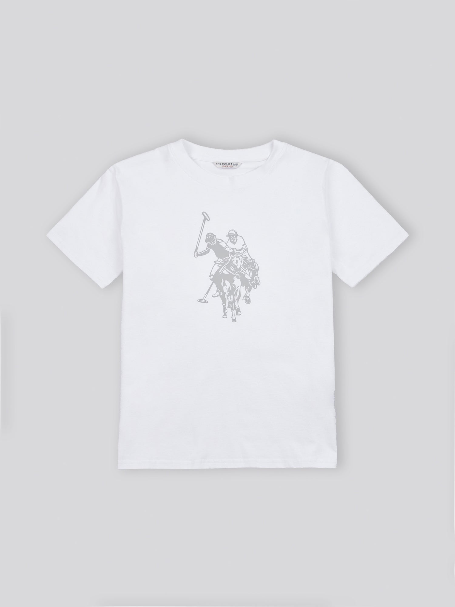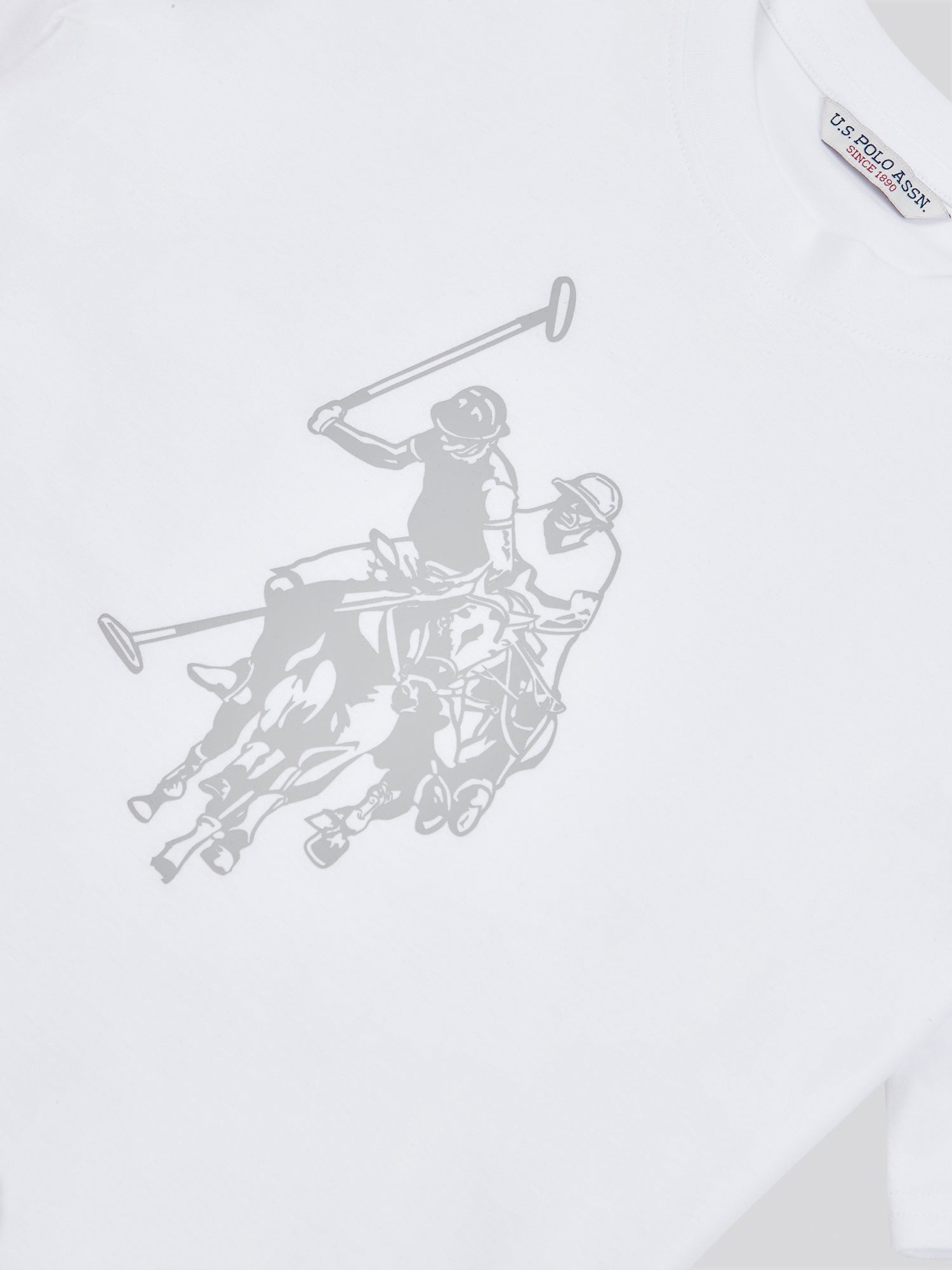 Womens Double Horsemen Print Crew Neck T-Shirt in Bright White