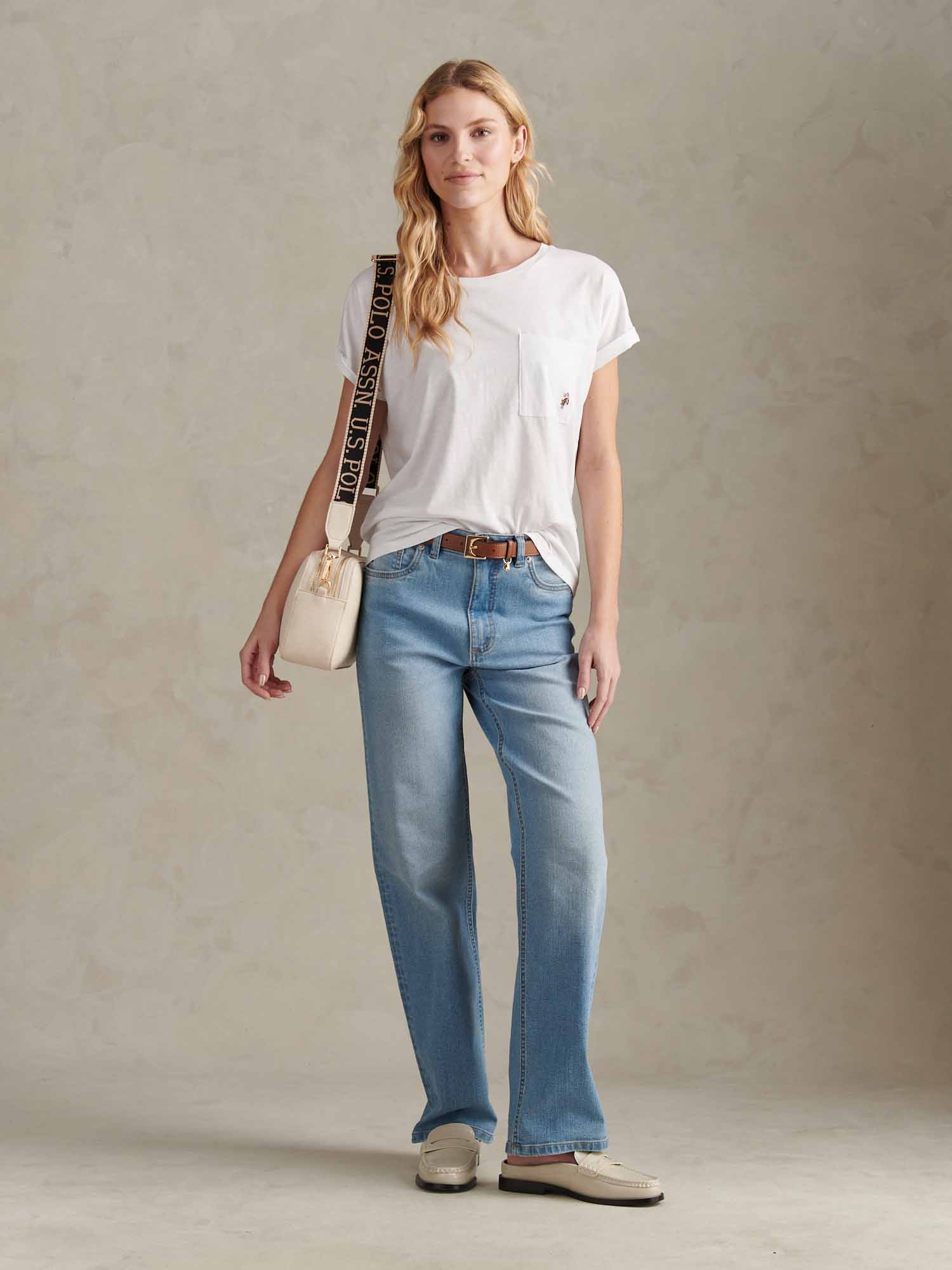 Timeless, versatile, and rooted in heritage, the U.S. Polo Assn. Womens Straight Fit Jean brings everyday refinement to your wardrobe. Designed with a high rise and a classic cut, it offers a flattering silhouette that works seamlessly with everything from relaxed knits to tailored shirts. Style yours with a polo and loafers for effortless weekend polish.