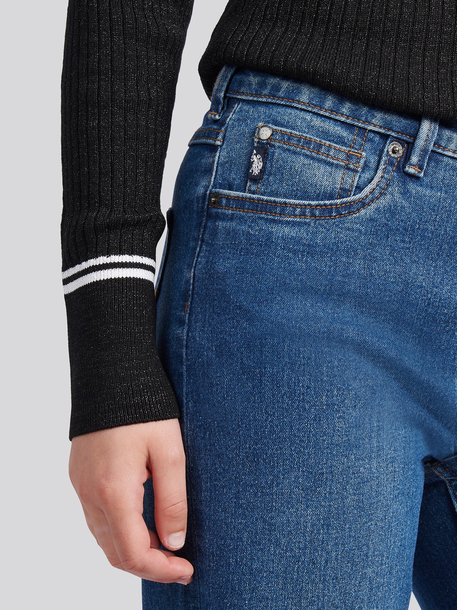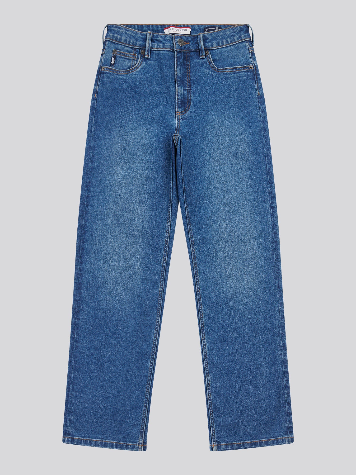 Timeless, versatile, and rooted in heritage, the U.S. Polo Assn. Womens Straight Fit Jean brings everyday refinement to your wardrobe. Designed with a high rise and a classic cut, it offers a flattering silhouette that works seamlessly with everything from relaxed knits to tailored shirts. Style yours with a polo and loafers for effortless weekend polish.