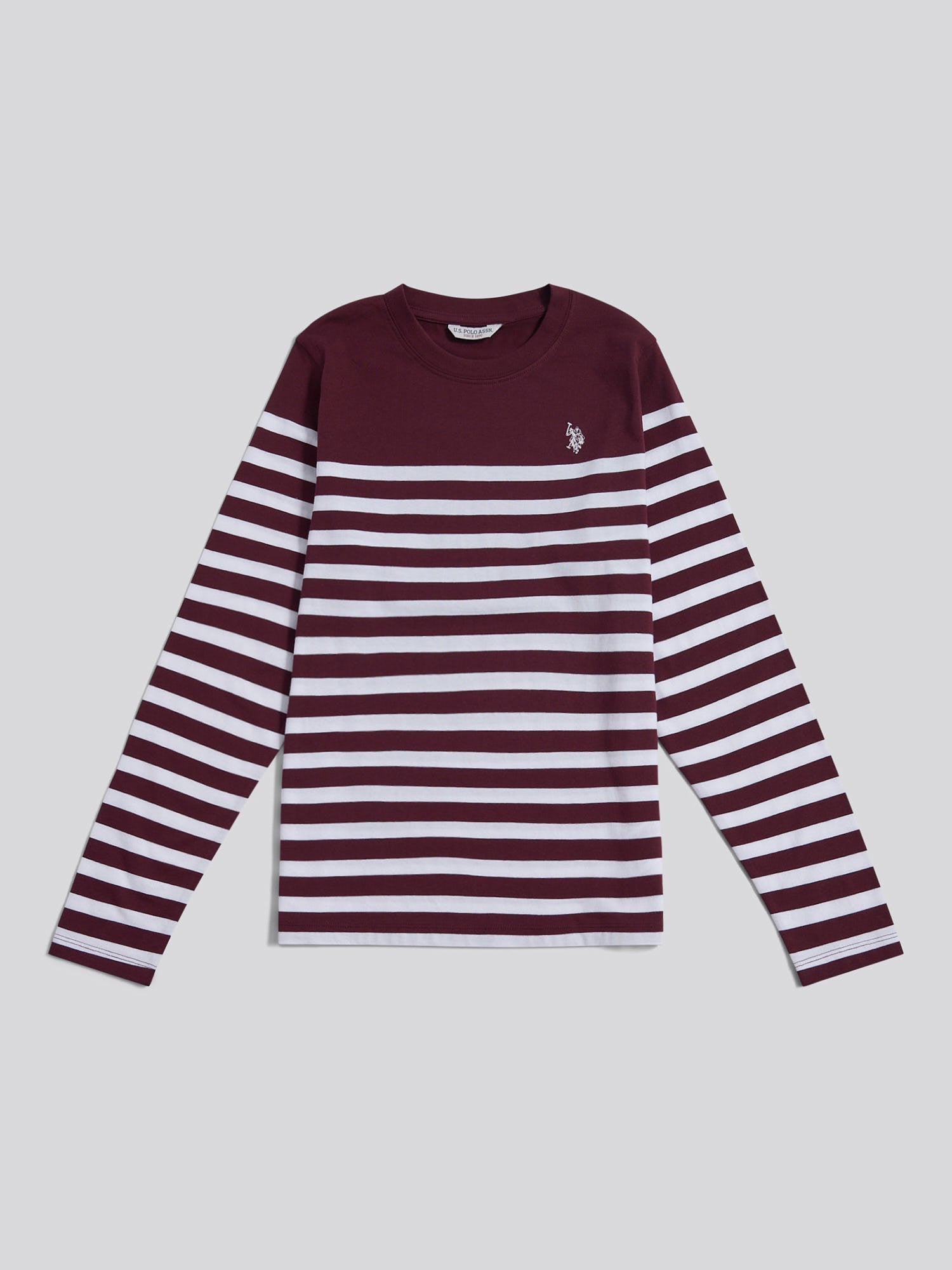 Inspired by heritage sportswear and timeless off-duty staples, the U.S. Polo Assn. Womens Stripe Long Sleeve T-Shirt delivers everyday refinement with a laid-back edge. The engineered yarn dye stripe and classic crew neck give it an enduring appeal—style it with wide-leg denim or relaxed tailoring for a versatile look.