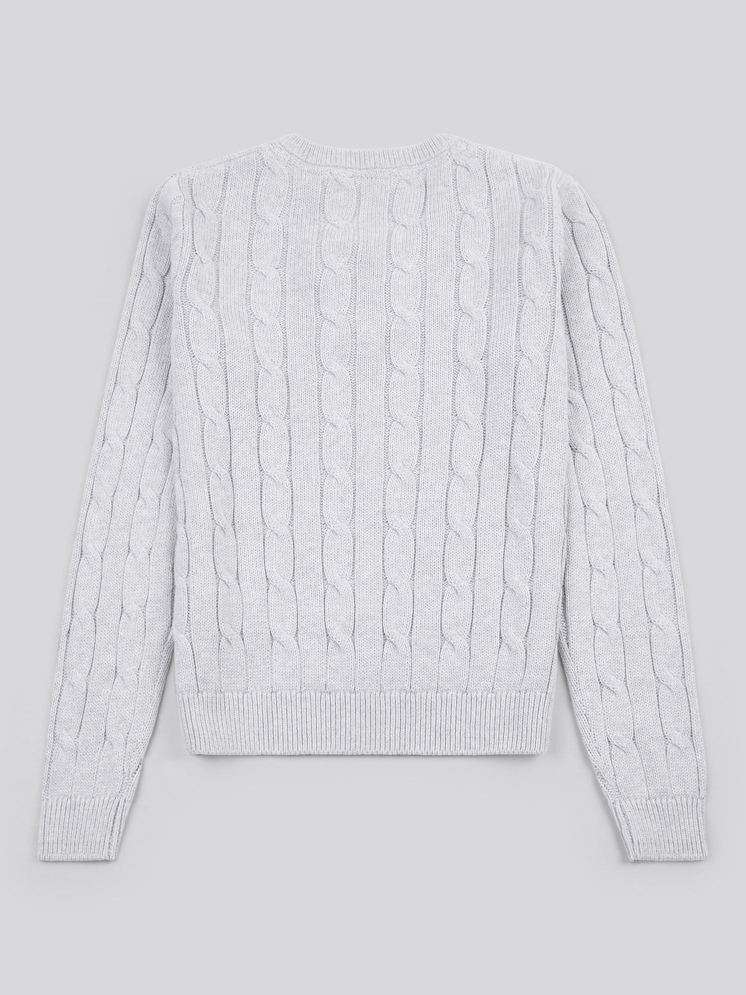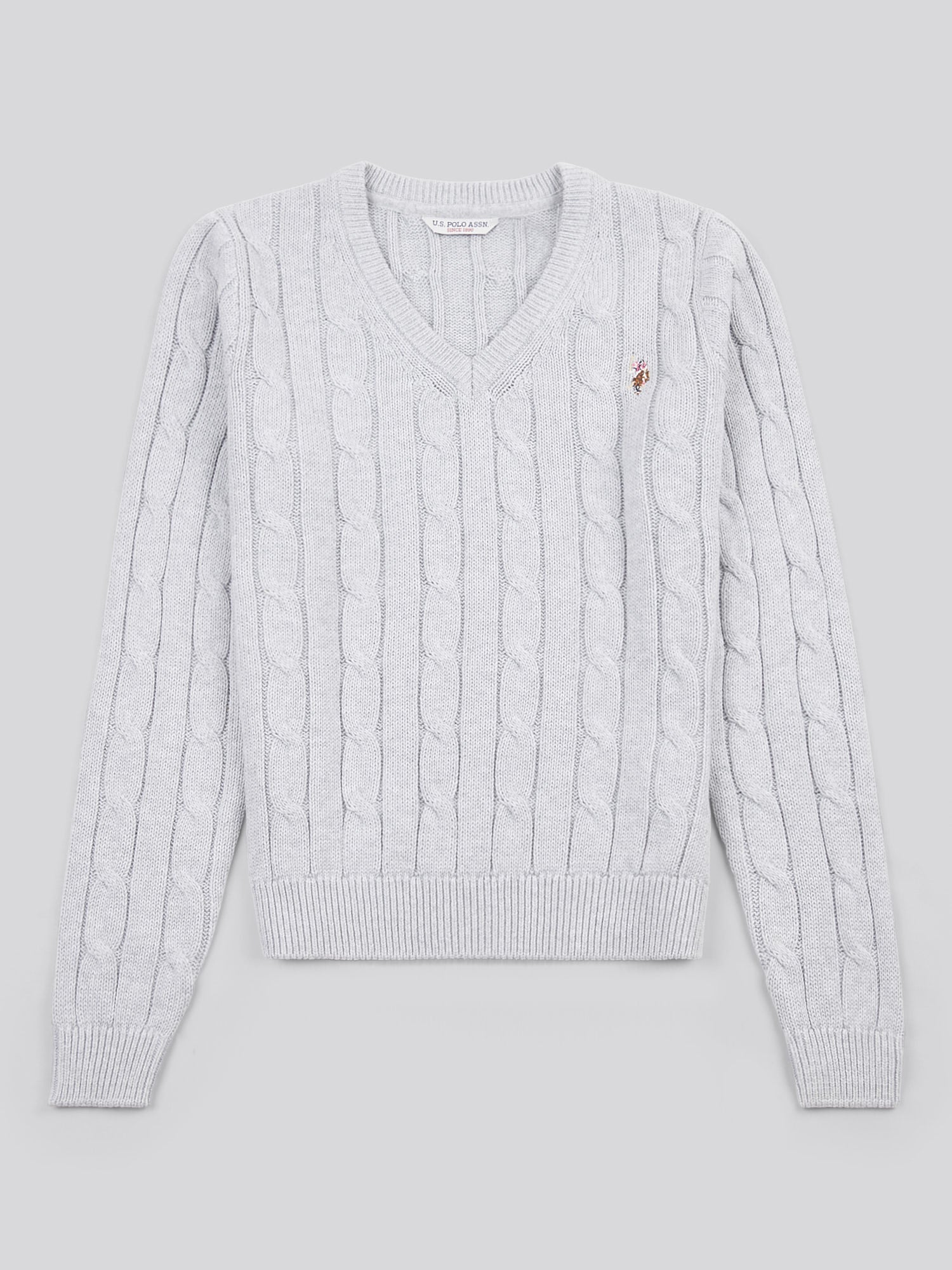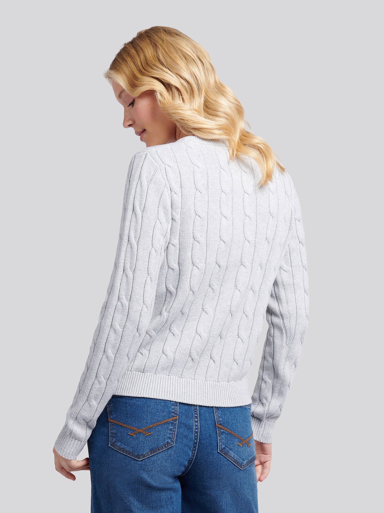 Womens V-Neck Cable Jumper in Pearl Grey Marl