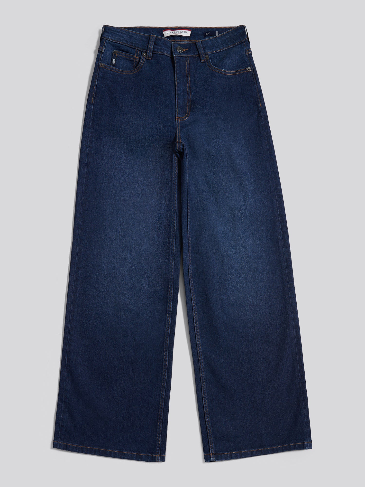 Cut with confidence, the U.S. Polo Assn. Womens Wide Fit Jean brings a refined edge to everyday dressing. With its relaxed silhouette and thoughtful detailing, this is denim designed for those who favour both comfort and polish. Pair with a crisp shirt or boxy tee for a modern contrast.