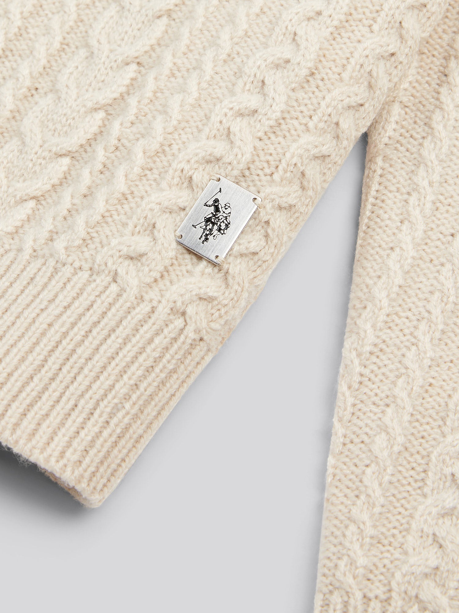 Combining traditional design with a contemporary edge, the U.S. Polo Assn. Mens Aran Knit Crew brings timeless texture to cool-weather wardrobes. The classic Aran cable knit adds depth and character, while the subtle branded metal badge ensures an authentic finish. Style it with dark chinos or layered under a tailored coat for a refined take on winter dressing.
