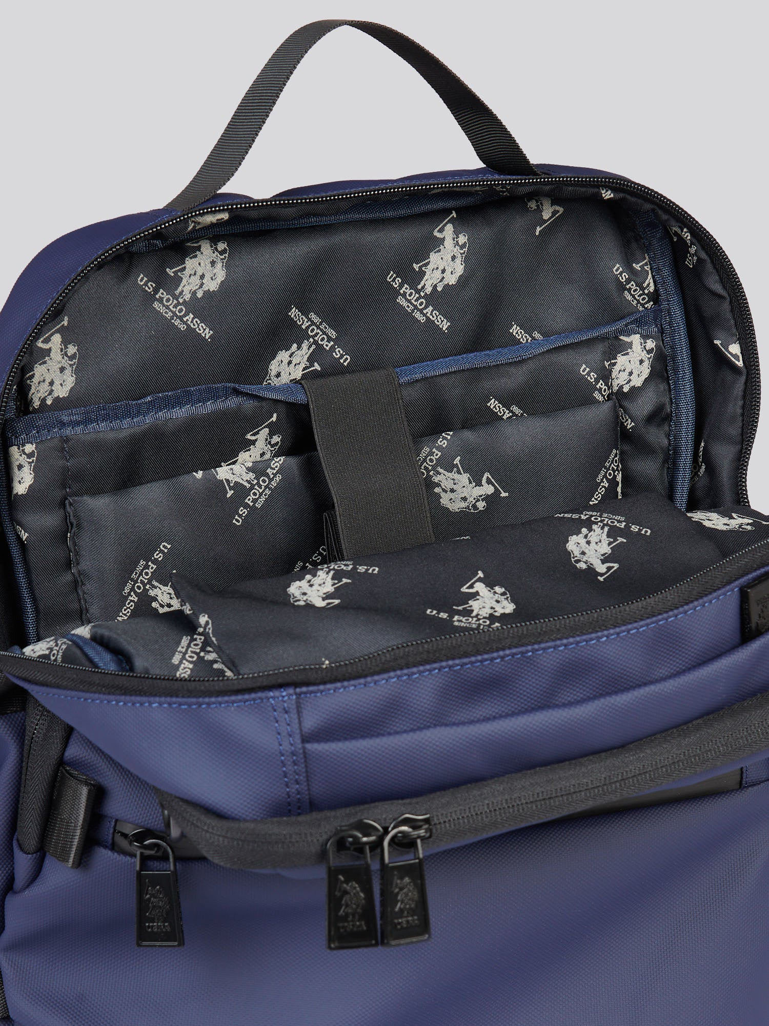 Built for the everyday with a streamlined design, the U.S. Polo Assn. Mens Arrowhead Backpack combines subtle utility with timeless style. Featuring a clean silhouette and tonal branding, it's ideal for commuting, travel, or weekends away. Style it with a polo shirt and chinos for an effortlessly smart look.