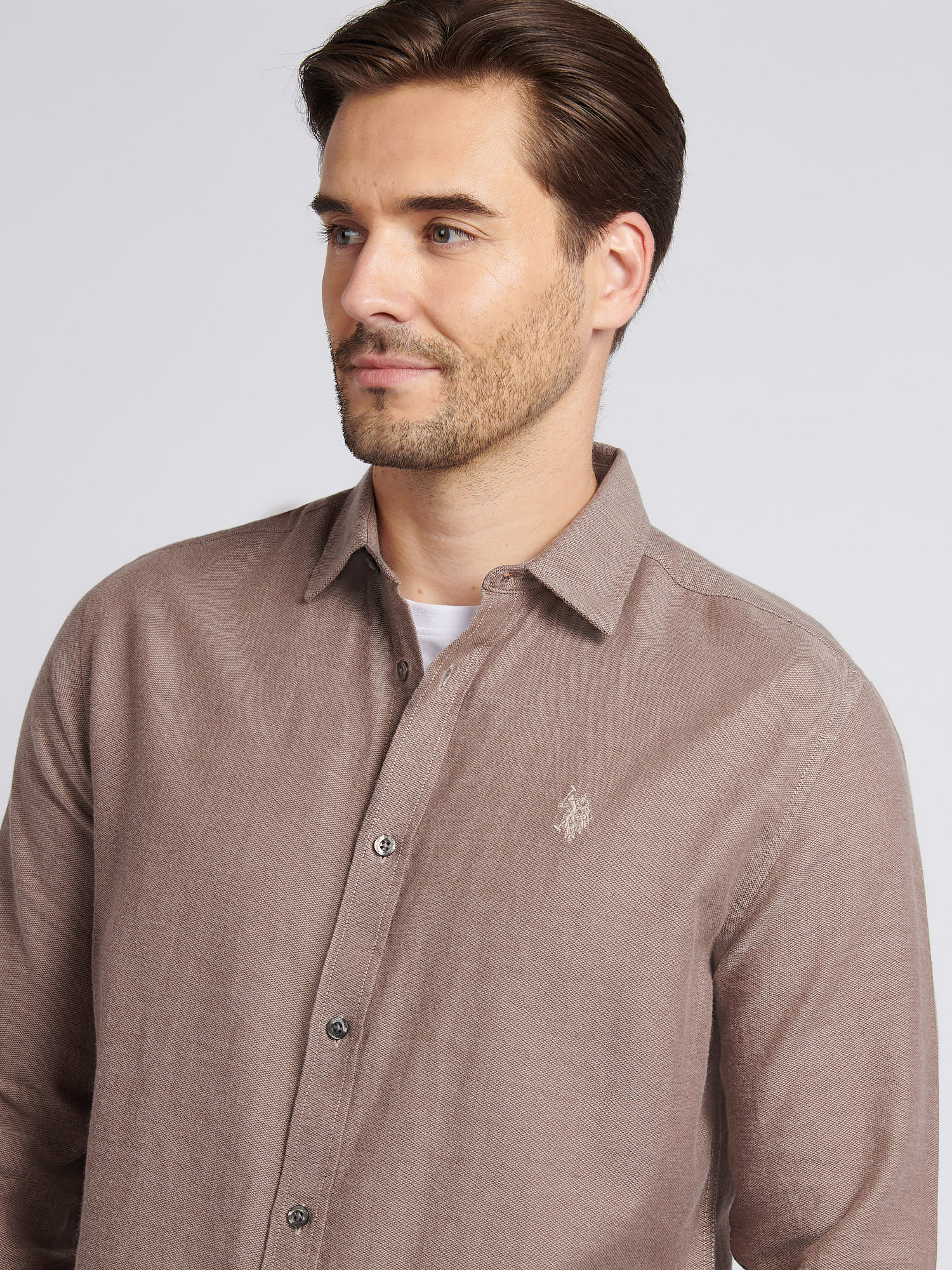 Bringing classic character to everyday dressing, the U.S. Polo Assn. Mens Brushed Dobby Shirt is a refined staple with a textural twist. The dobby weave and brushed finish add subtle depth and softness, while thoughtful detailing ensures this piece stands apart. Wear it buttoned up with chinos or layered over a tee for a laid-back, authentic look.
