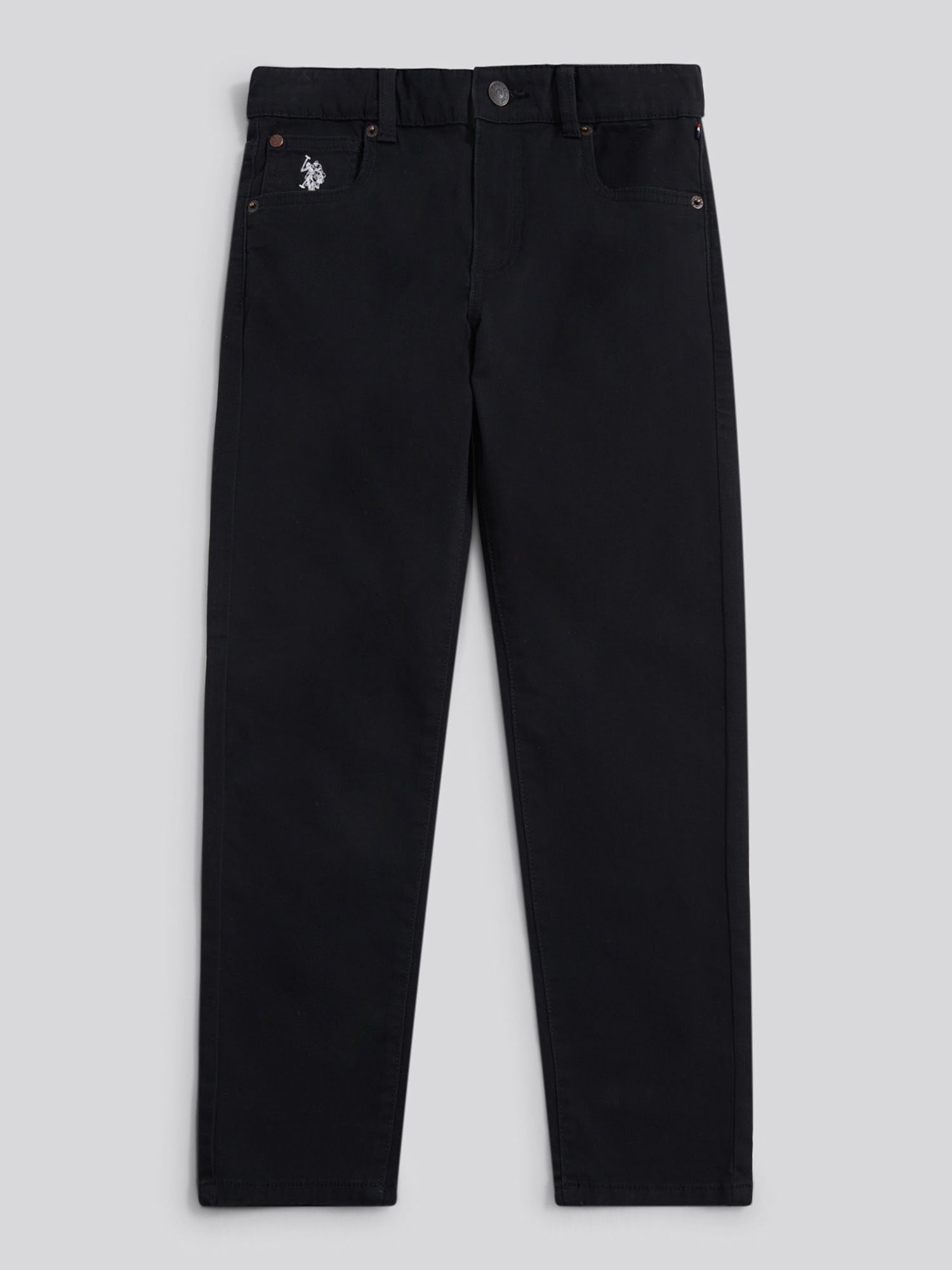 Inspired by classic denim styling, the U.S. Polo Assn. Boys Core 5 Pocket Trouser is crafted with a comfortable stretch twill for ease of movement and everyday wear. Subtle branding and functional details bring a refined finish to this versatile staple. Pair with a polo shirt and trainers for effortless weekend style.