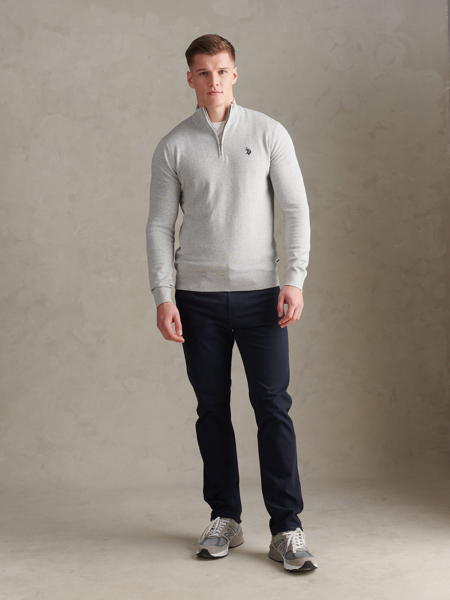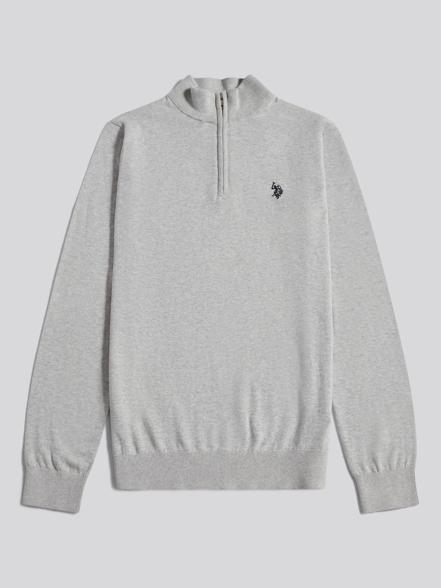 Cotton 1/4 Zip Neck Mid Grey Marl