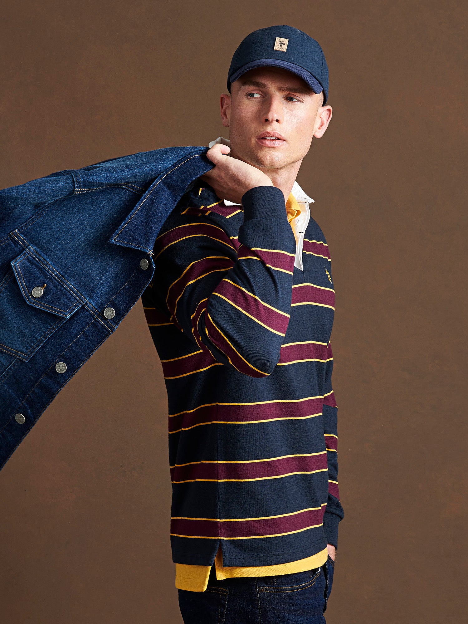 Channel heritage style with the U.S. Polo Assn. Mens Double Horsemen Stripe Rugby. Crafted in a weighty cotton jersey with engineered stripes, it delivers bold impact and refined ease in equal measure. Style it with tailored joggers or denim for a modern take on classic sportswear.