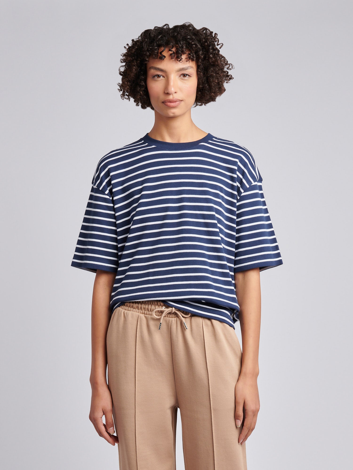 Strike the perfect balance between bold design and laid-back style with the U.S. Polo Assn. Womens Heavyweight Stripe Loose Crew Neck T-Shirt. Featuring broad yarn-dyed stripes and a relaxed silhouette, this piece brings an elevated edge to everyday dressing. Style it with slim denim or tailored shorts for effortless contrast.