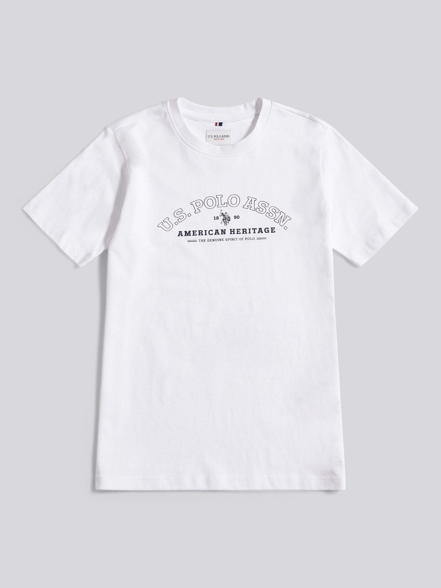 Inspired by the legacy of the sport, the U.S. Polo Assn. Boys Heritage Graphic Print T-Shirt blends vintage athletic style with everyday comfort. The chest print makes a confident statement, giving this piece a bold yet timeless appeal. Style it with straight-leg jeans and trainers for a look that transitions effortlessly from city streets to countryside adventures.