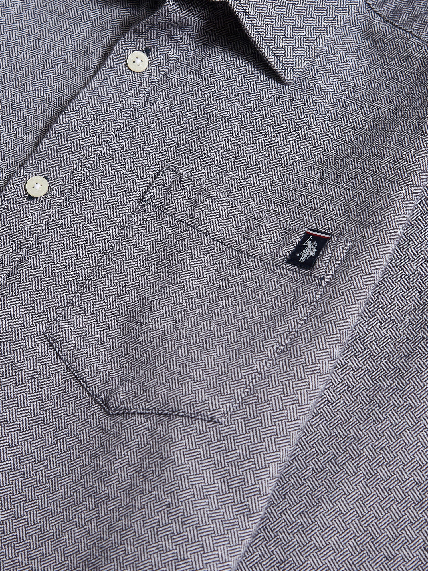 Blending refined texture with everyday ease, the U.S. Polo Assn. Mens Herringbone Crosshatch Textured Shirt brings a fresh perspective to timeless shirting. The dobby weave creates a subtle herringbone effect, while a soft peach finish enhances comfort and wearability. Style it buttoned up with tailored trousers or layer open over a crew neck tee for a laid-back take on heritage dressing.