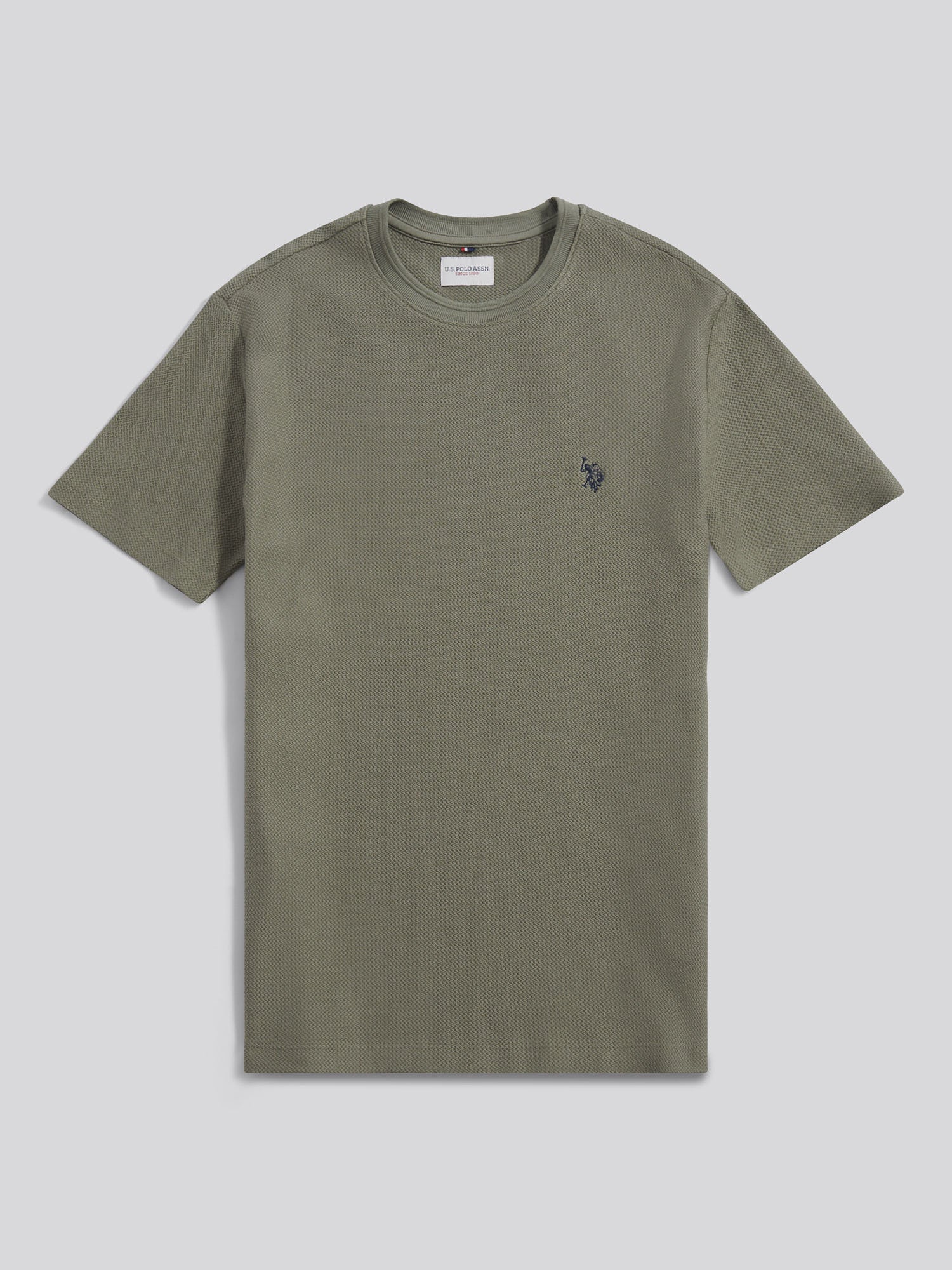 Refined with a subtle edge, the U.S. Polo Assn. Mens Herringbone Texture T-Shirt brings depth and character to your everyday essentials. Designed with a premium herringbone jersey finish, it’s a fresh update on a classic silhouette. Pair with tailored shorts or dark denim for effortless day-to-evening dressing.