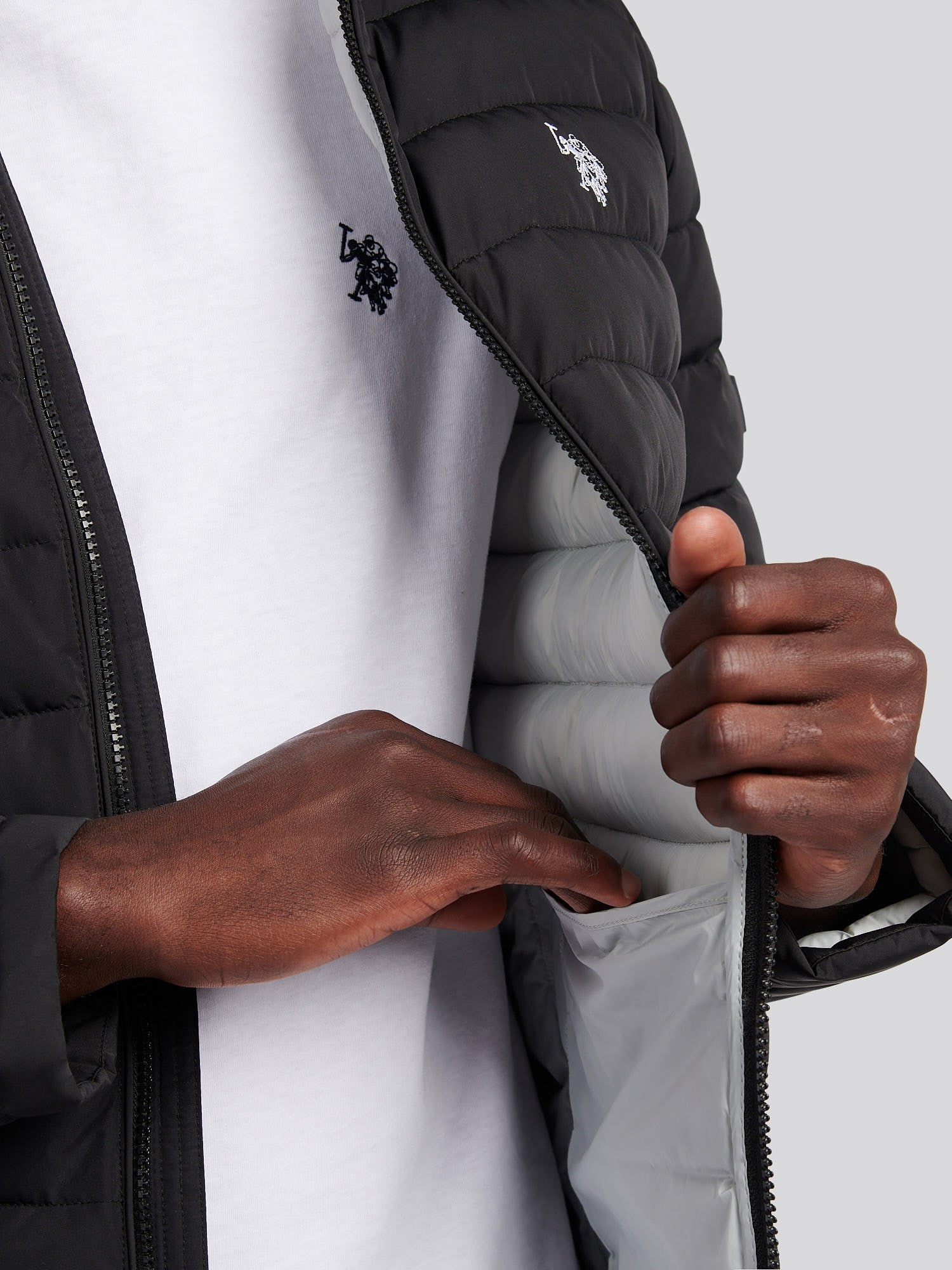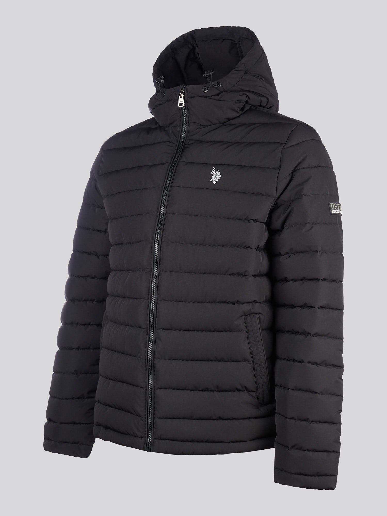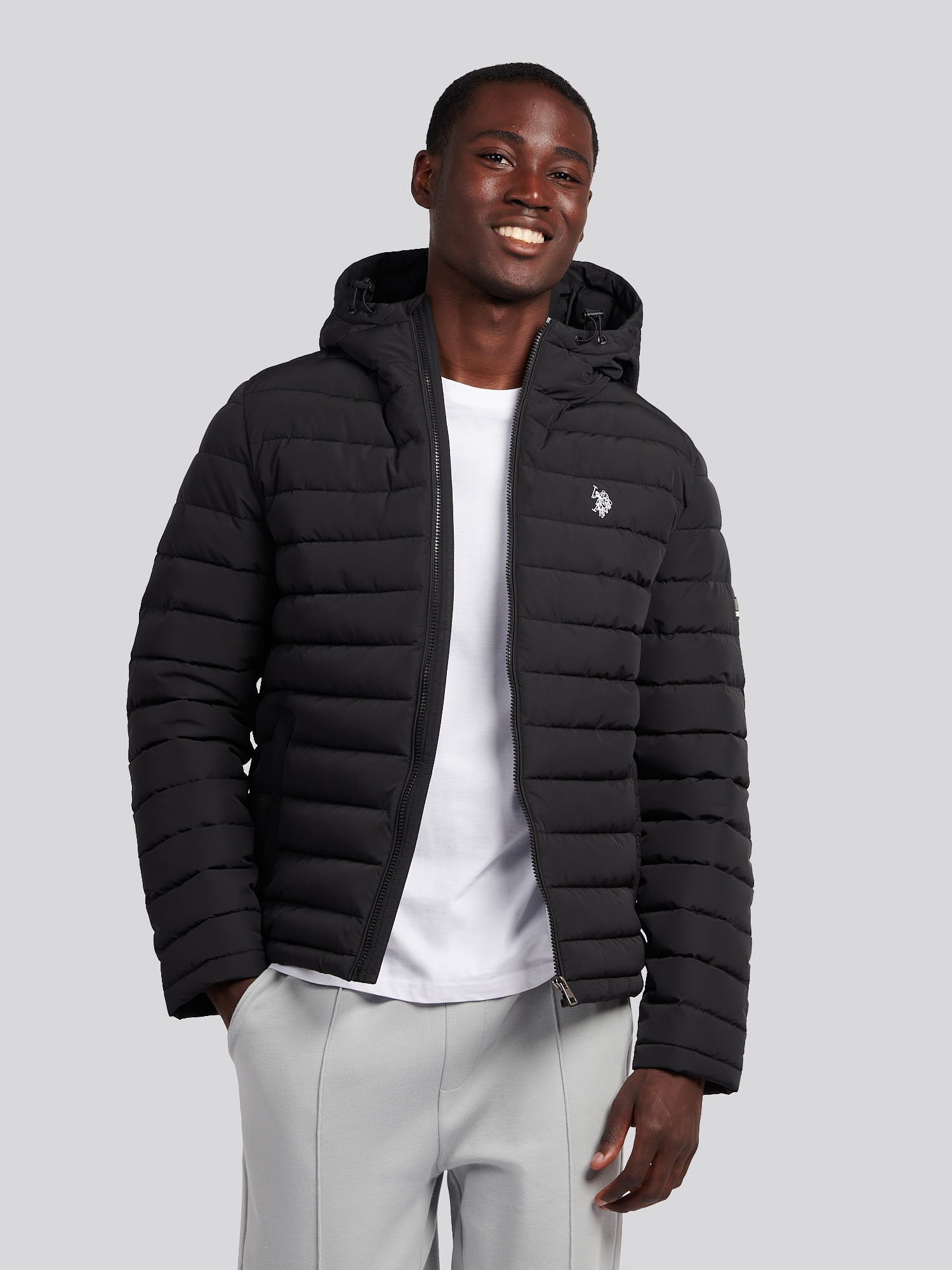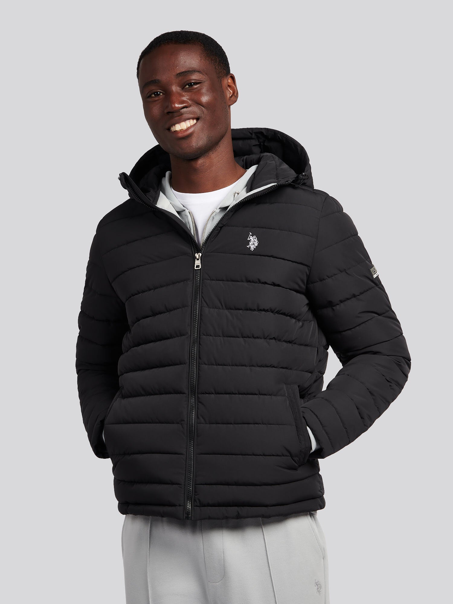 Designed to take on the elements with refined confidence, the U.S. Polo Assn. Mens Lightweight Quilt Hooded Puffer blends sporting heritage with everyday practicality. Featuring a contemporary silhouette and understated details, it’s the ideal piece to layer over knitwear or a textured polo for off-duty days outdoors.