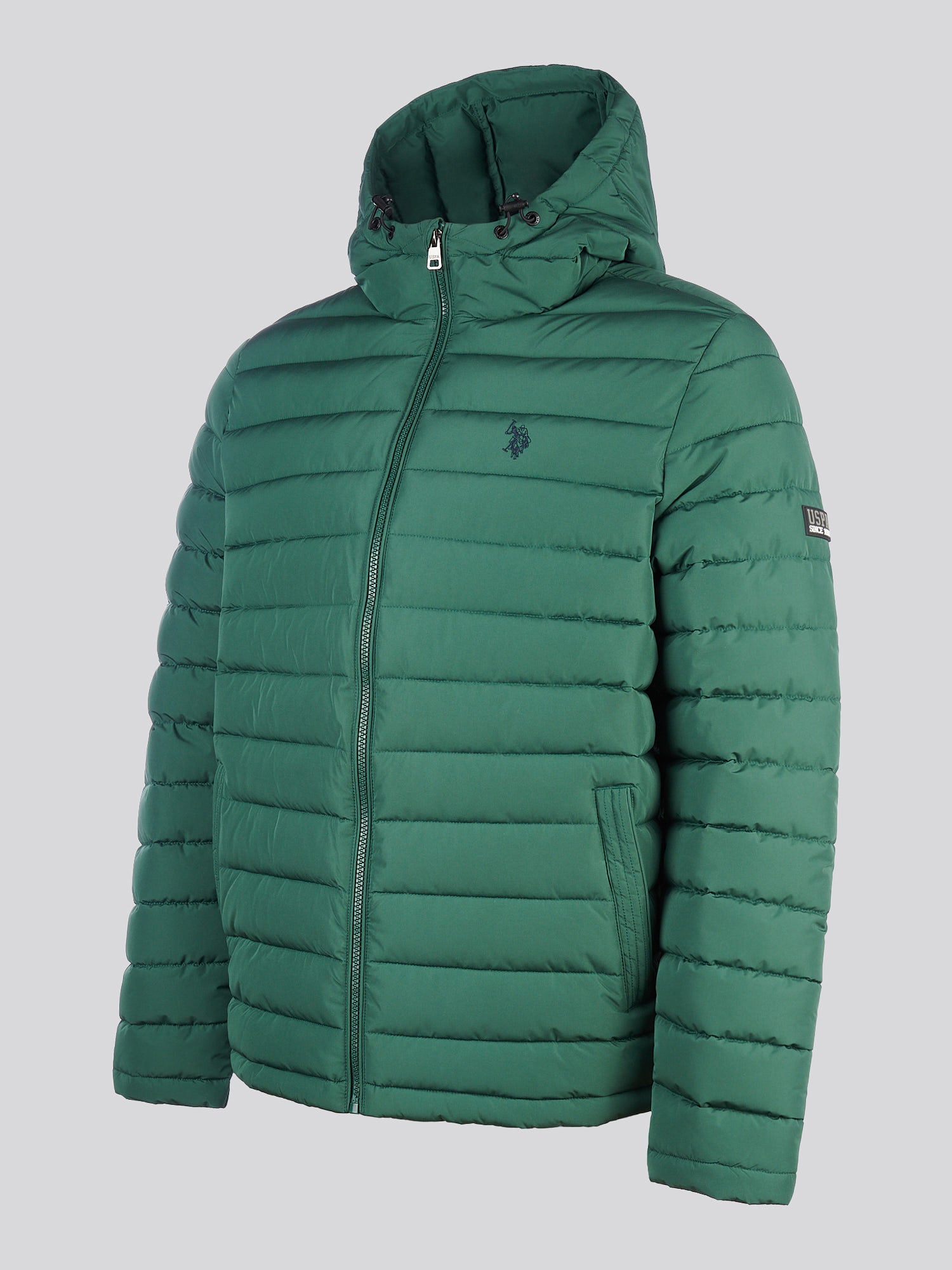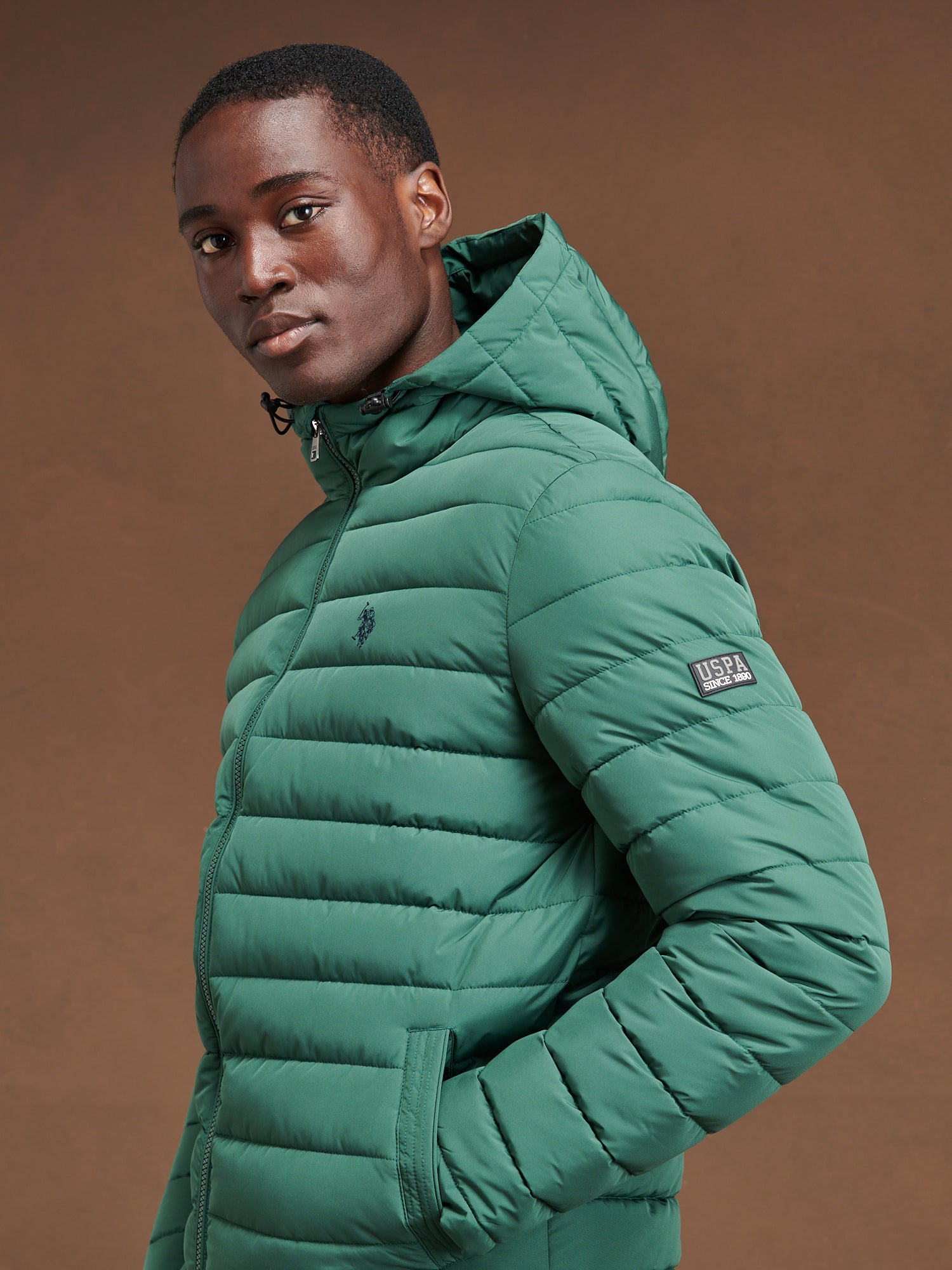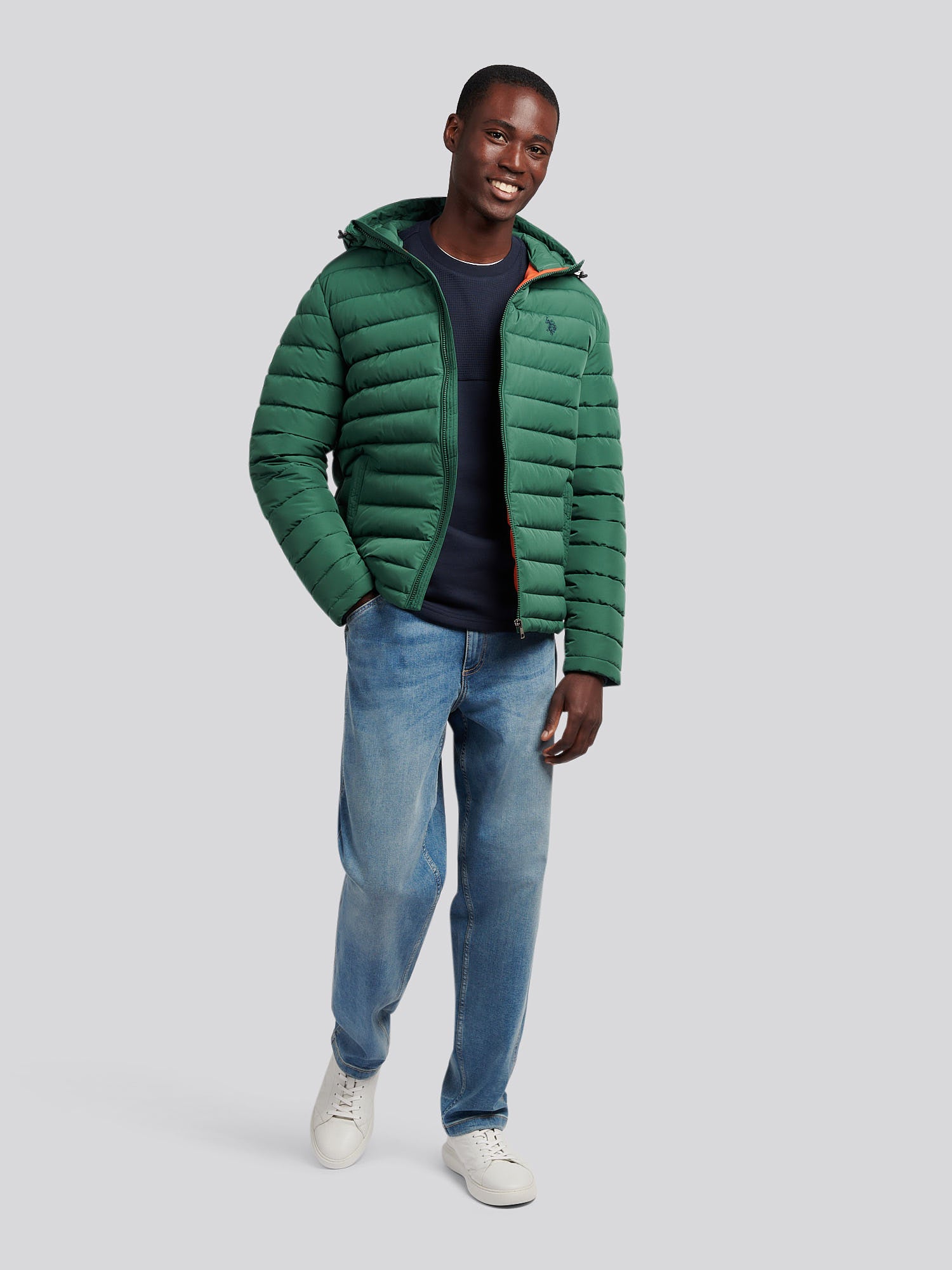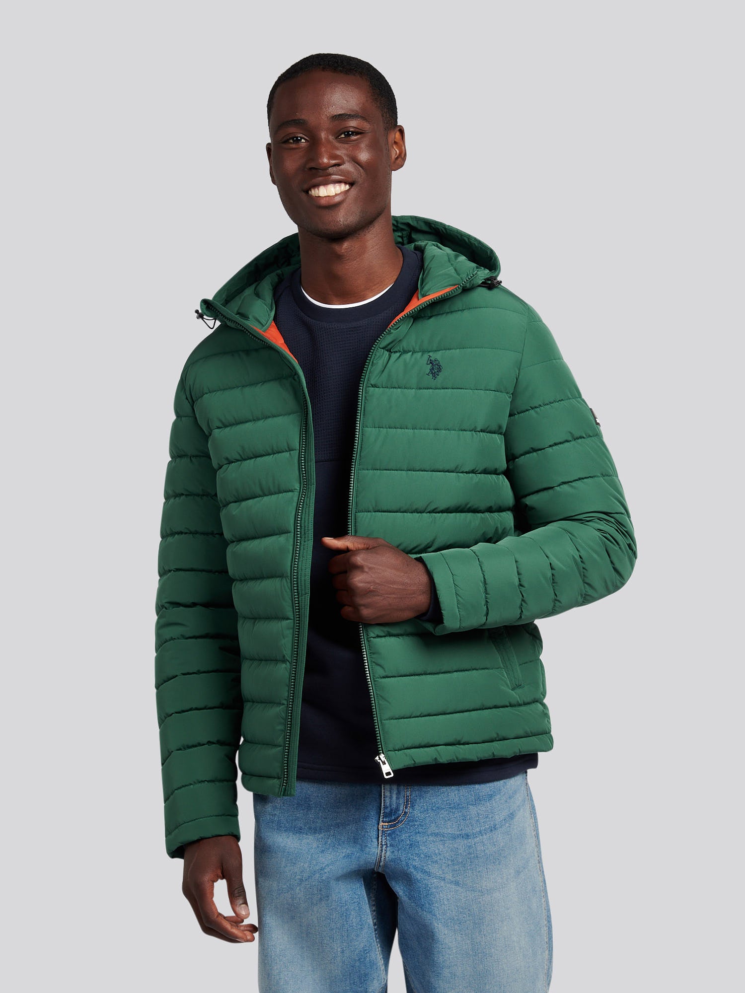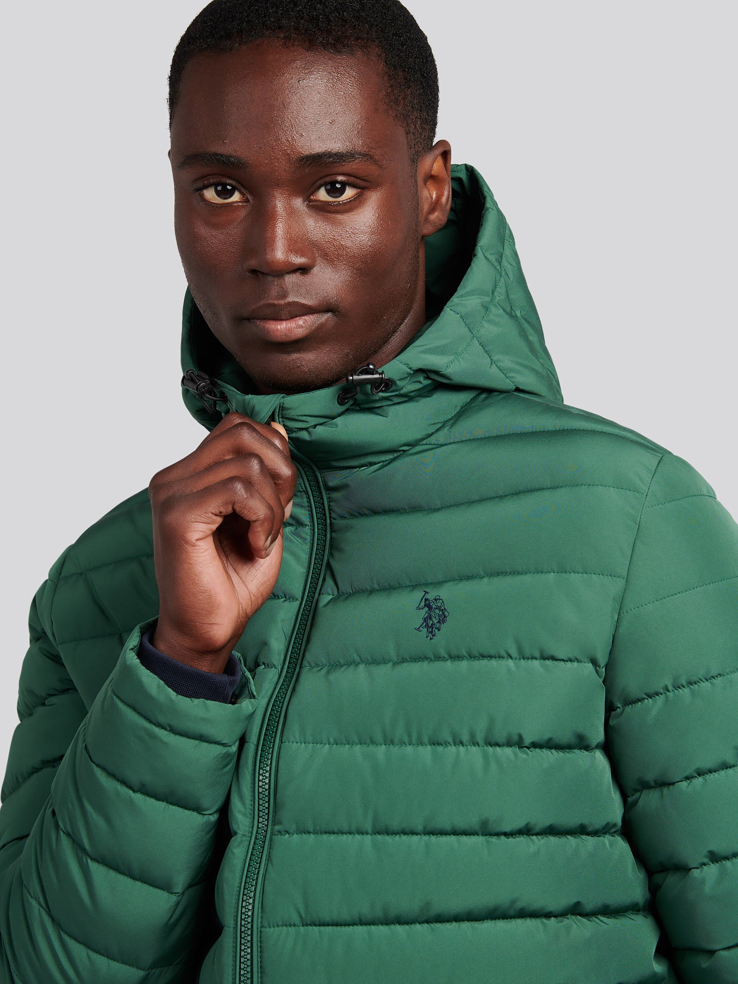Designed to take on the elements with refined confidence, the U.S. Polo Assn. Mens Lightweight Quilt Hooded Puffer blends sporting heritage with everyday practicality. Featuring a contemporary silhouette and understated details, it’s the ideal piece to layer over knitwear or a textured polo for off-duty days outdoors.