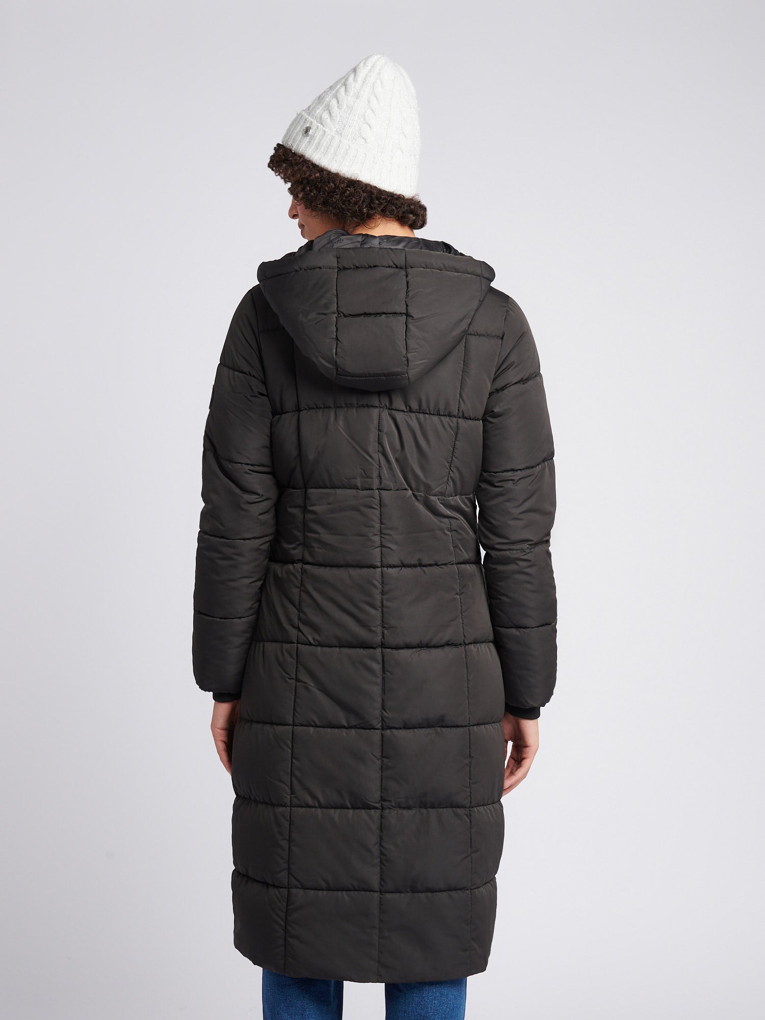 Longline Square Quilt Puffer Coat Black