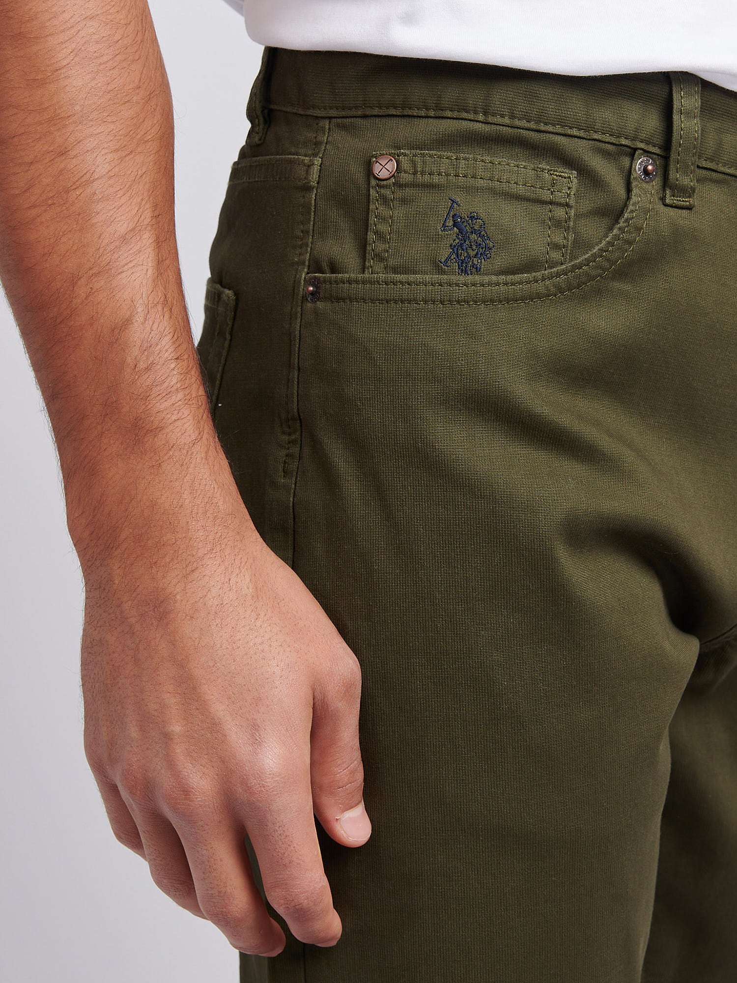 Ten U.S. Polo Assn. Męskie spodnie Bedford Cord 5 Pocket Trousers oferują ponadczasowe połączenie stylu i wygody. Wykonane z luksusowego sztruksu Bedford z delikatnym stretchem, spodnie te zapewniają swobodę ruchu i wygodę noszenia przez cały dzień. Idealne zarówno do eleganckich, jak i swobodnych stylizacji, zestaw je z koszulą z krótkim rękawem lub prostym T-shirtem, aby uzyskać wszechstronny styl.