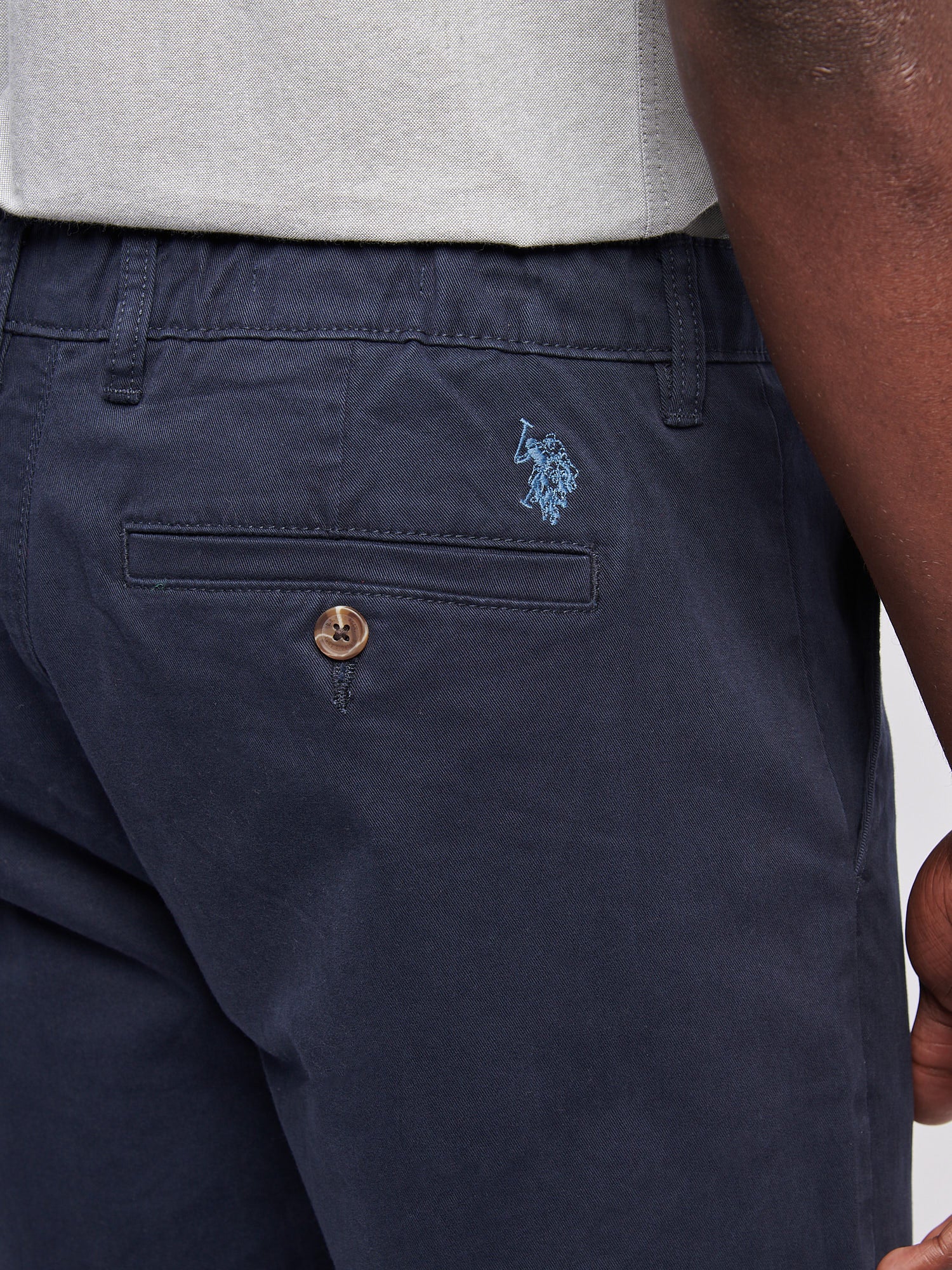 Łączące styl i wygodę męskie spodnie chino Comfort Waist Classic marki U.S. Polo Assn. to wszechstronny dodatek do każdej garderoby. Zaprojektowane z miękkiej, rozciągliwej tkaniny i elastycznego, wygodnego pasa, te chinosy zapewniają nienaganne dopasowanie, które dostosowuje się do Twoich ruchów. Połącz z koszulą zapinaną na guziki i swetrem, aby uzyskać elegancki, elegancki wygląd.