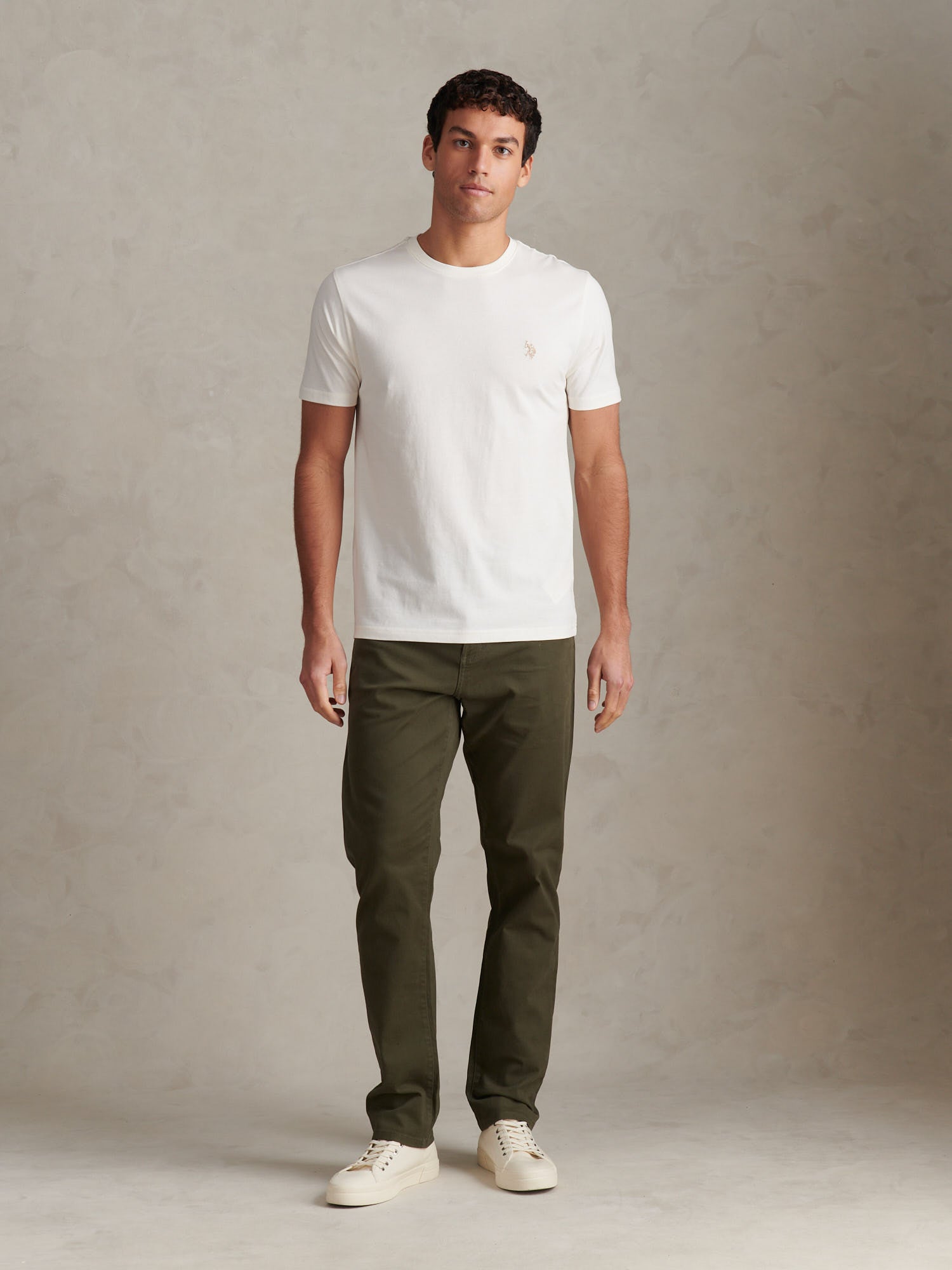 Koszulka Double Horsemen dla mężczyzn to niezbędny element garderoby. U.S. Polo Assn. oferuje wygodę i styl w jednym. Wykonany w 100% z bawełnianego dżerseju, ten klasyczny element doskonale sprawdza się jako samodzielny element lub jako element warstwowy, tworząc wszechstronny wygląd. Haftowane podwójne logo Horsemen dodaje autentycznego akcentu. Połącz z dżinsami lub chinosami, aby uzyskać ponadczasowy strój.