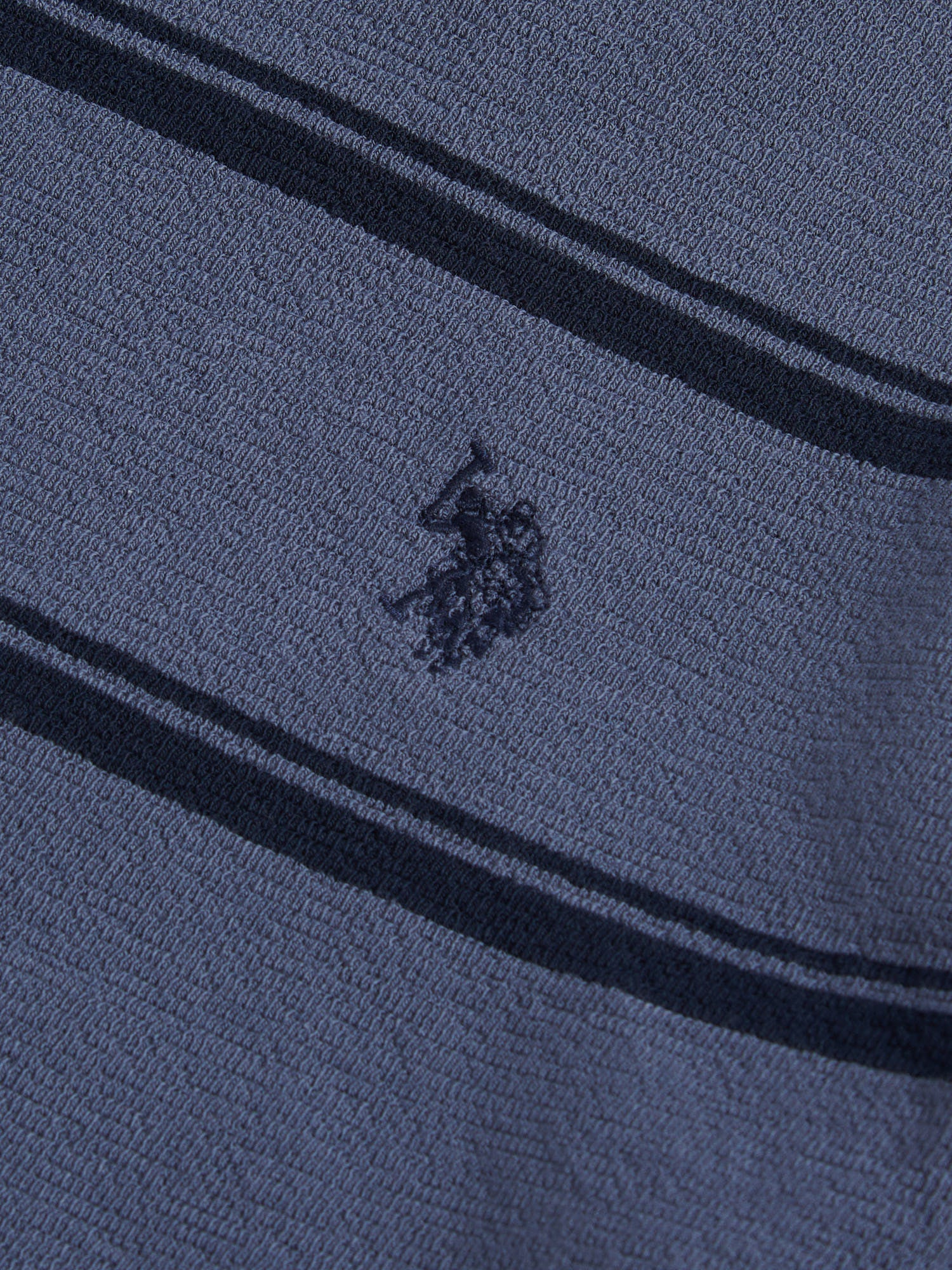 Męska koszulka w paski Terry marki U.S. Polo Assn. wnosi świeży, wyrafinowany wygląd do Twojej swobodnej garderoby dzięki miękkiej tkaninie frotte i zaprojektowanemu wzorowi pasków. Ta koszula jest idealna dla tych, którzy cenią sobie klasyczny styl z nutą wyrafinowania. Połącz ją z dopasowanymi szortami na wyjścia w ciepłe dni lub z dżinsami, aby uzyskać swobodny, ale elegancki wygląd.