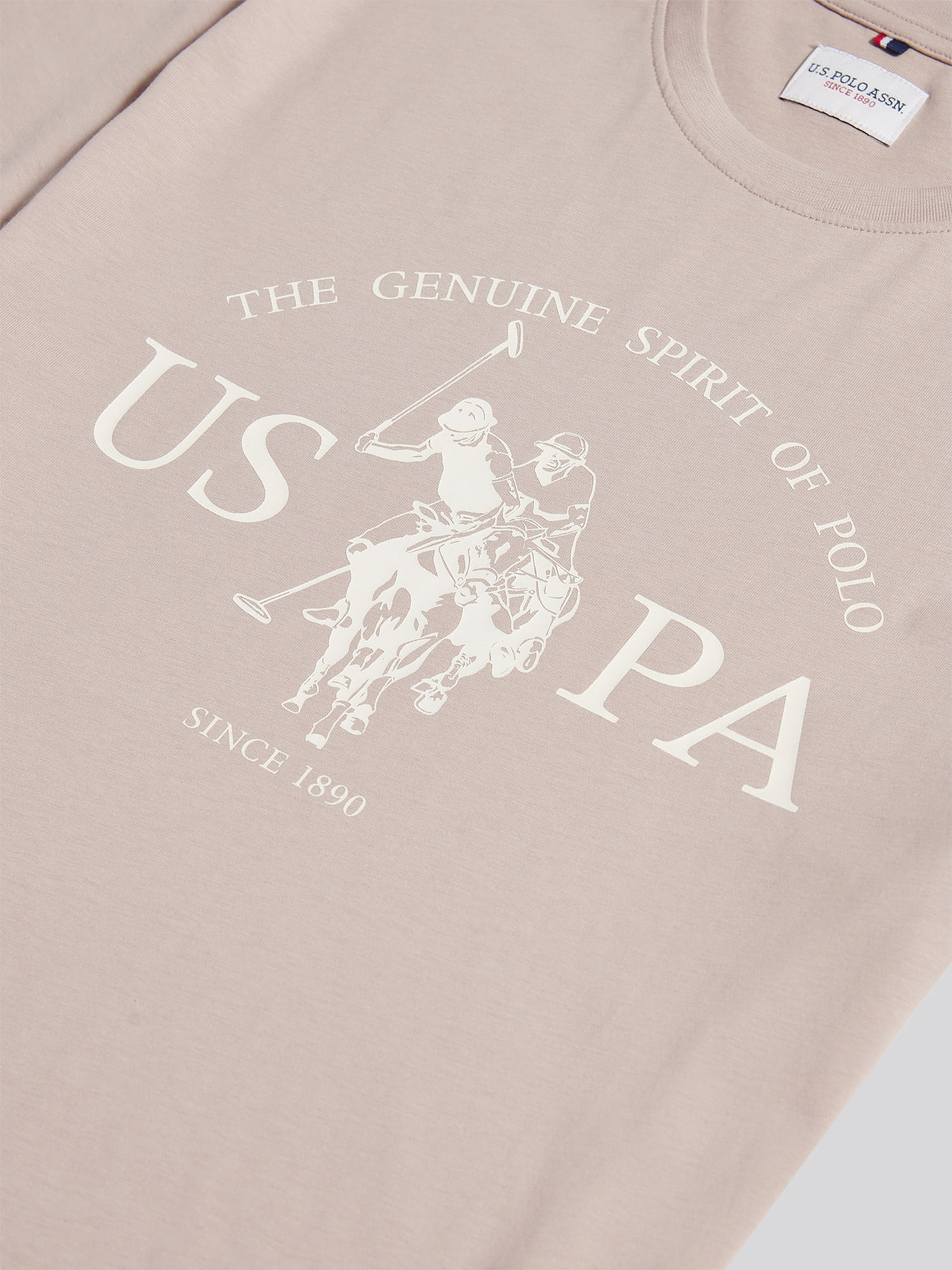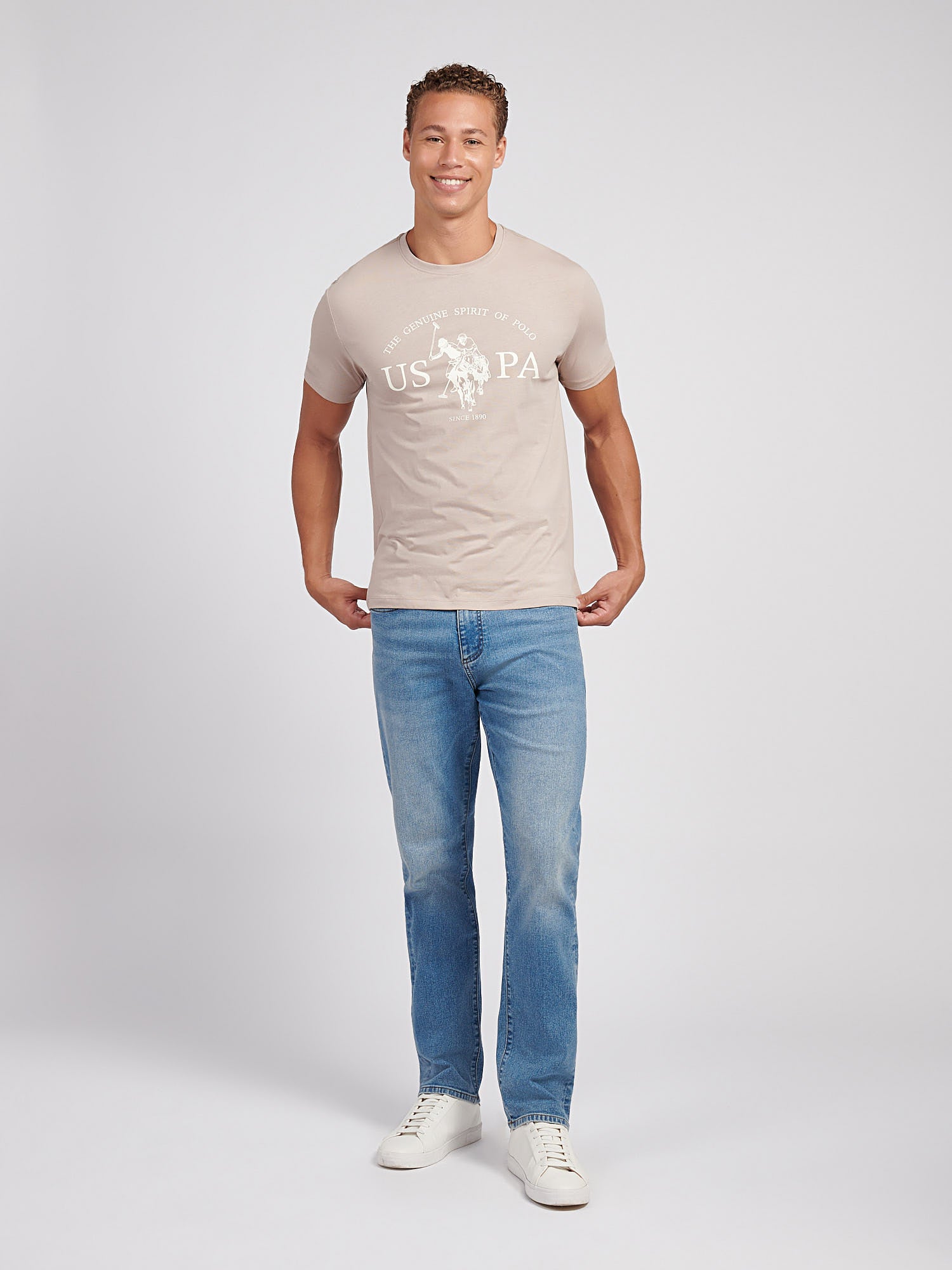 Wyraź siebie za pomocą śmiałego oświadczenia U.S. Polo Assn. Męska koszulka z nadrukiem USPA Print Graphic. Wykonana z myślą o komforcie i stylu, ta koszulka ma efektowny nadruk USPA, idealny do podniesienia poziomu codziennej garderoby. Połącz z dżinsami lub chinosami, aby uzyskać swobodny, ale elegancki wygląd.