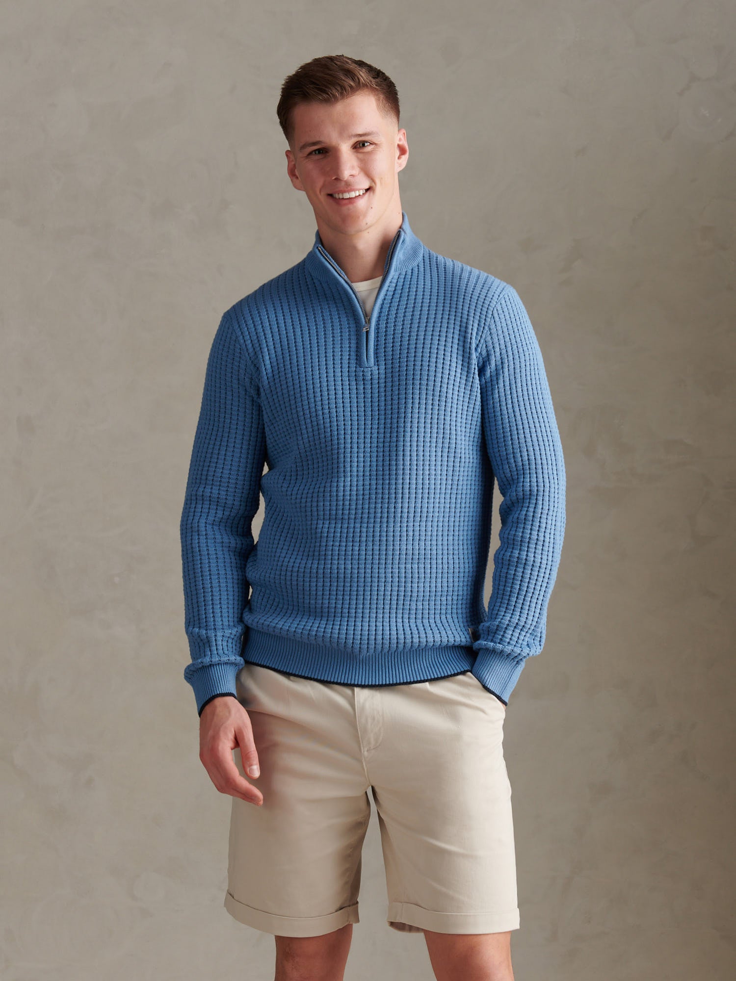 Open Knit 1/4 Zip Funnel Riviera