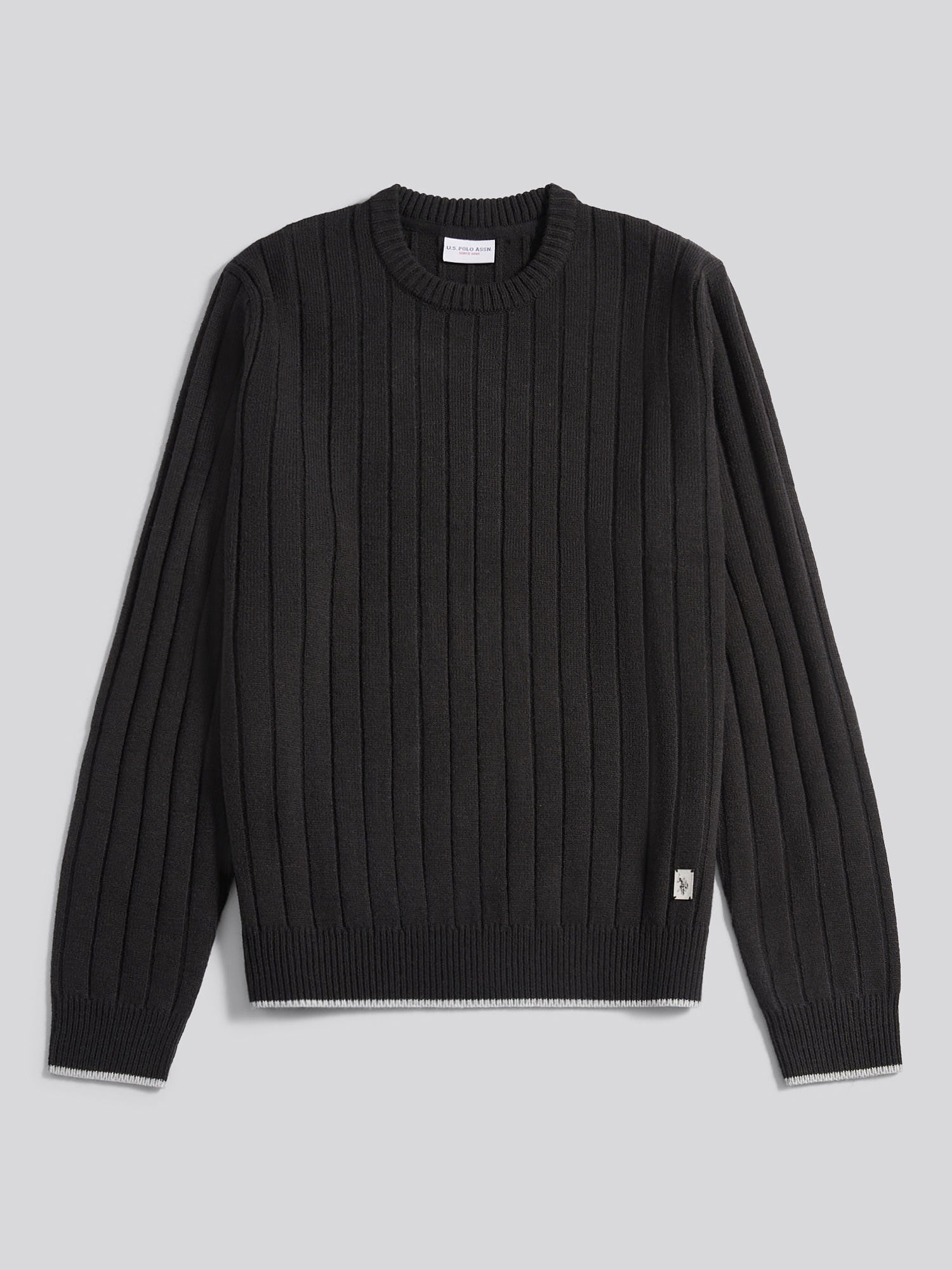 Refined texture meets effortless design in the U.S. Polo Assn. Mens Rib Knit Crew. This classic layer features a subtle tipped finish at the cuffs and hem for a nod to heritage, while the rib construction adds structure and a modern edge. Style it with relaxed trousers and leather trainers for a timeless, off-duty look.