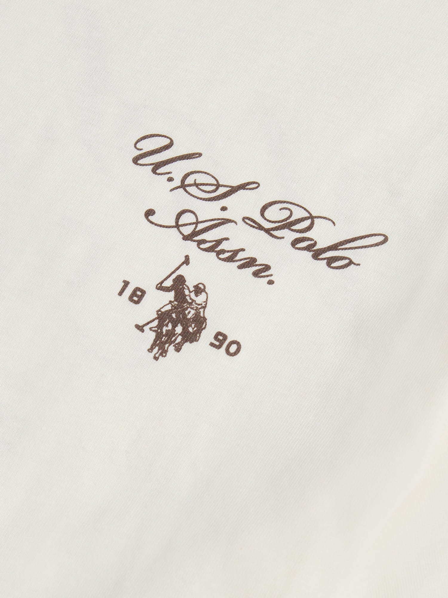 Combining heritage design with a modern attitude, the U.S. Polo Assn. Mens Script Print Back Graphic T-Shirt delivers a confident take on casualwear. With a pigment-printed script detail across the back, this piece offers a nod to legacy through a fresh perspective. Wear it with a light overshirt and tapered chinos for an easy, everyday uniform.