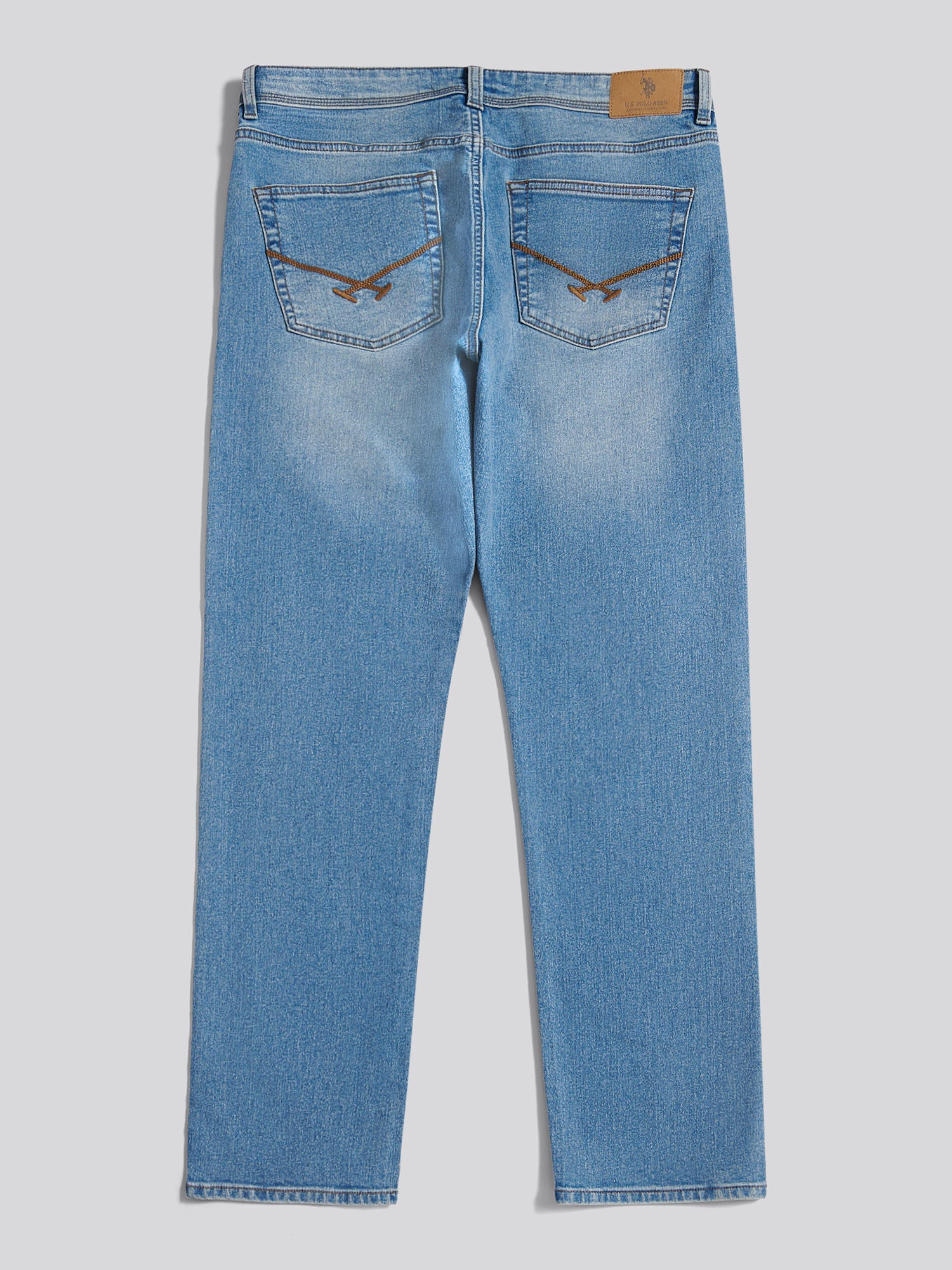 Combining classic structure with contemporary detail, the U.S. Polo Assn. Mens Straight Fit Jean is a refined everyday essential crafted with comfort stretch denim and heritage finishings. Designed for versatility, it’s ideal with a crisp Oxford shirt or layered under a quarter-zip for a look that works from morning errands to evening plans.