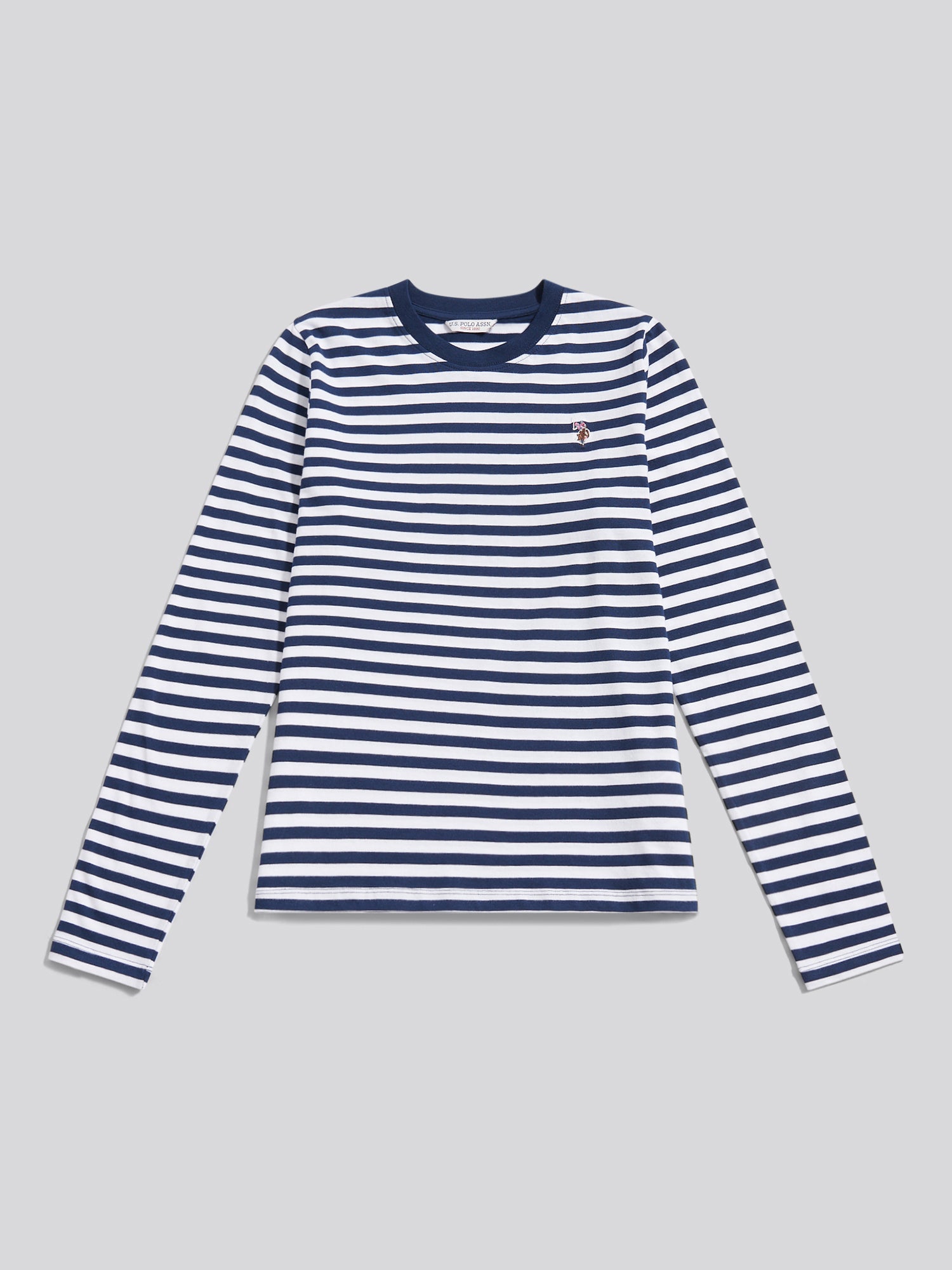 Update your layering game with the U.S. Polo Assn. Womens Stripe Long Sleeve T-Shirt. Designed with a refined stripe pattern and authentic Double Horsemen embroidery at the chest, it's a go-to for effortless off-duty dressing. Style with relaxed denim or tucked into chinos for a look that moves from brunch to countryside walks.