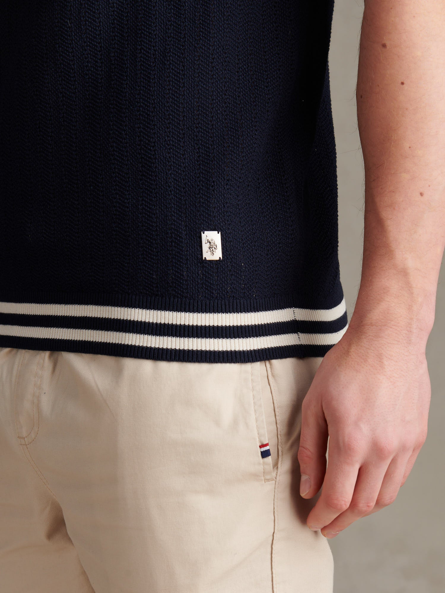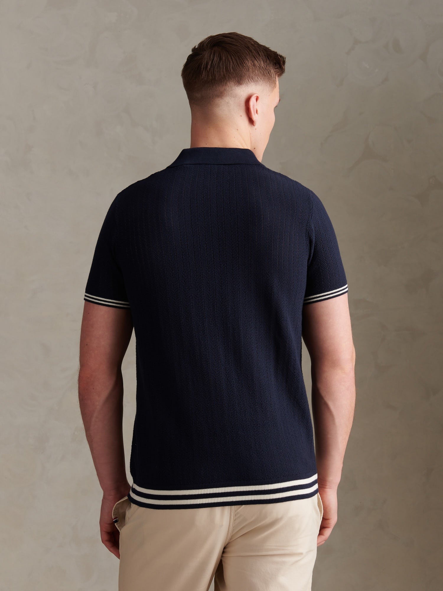 Tipped Open Knit SS Polo Dark Sapphire Navy