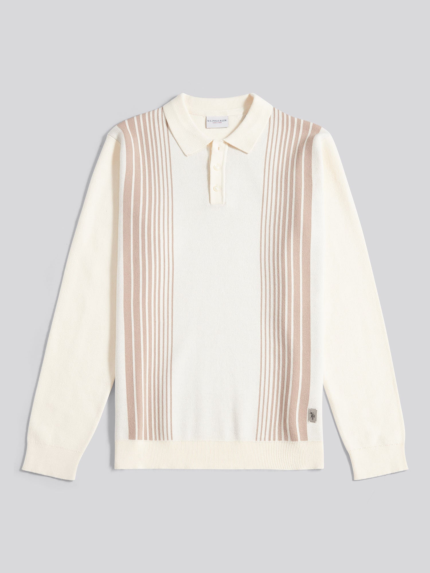 Timeless yet statement-making, the U.S. Polo Assn. Mens Vertical Stripe Knit Long Sleeve Polo Shirt is designed with a refined stripe layout for a fresh perspective on classic knitwear. The clean contrast stripe placement adds sharpness, while the long sleeves and structured collar elevate its everyday appeal. Wear it with tailored chinos or layered under a casual blazer for a look that moves seamlessly between smart and laid-back.